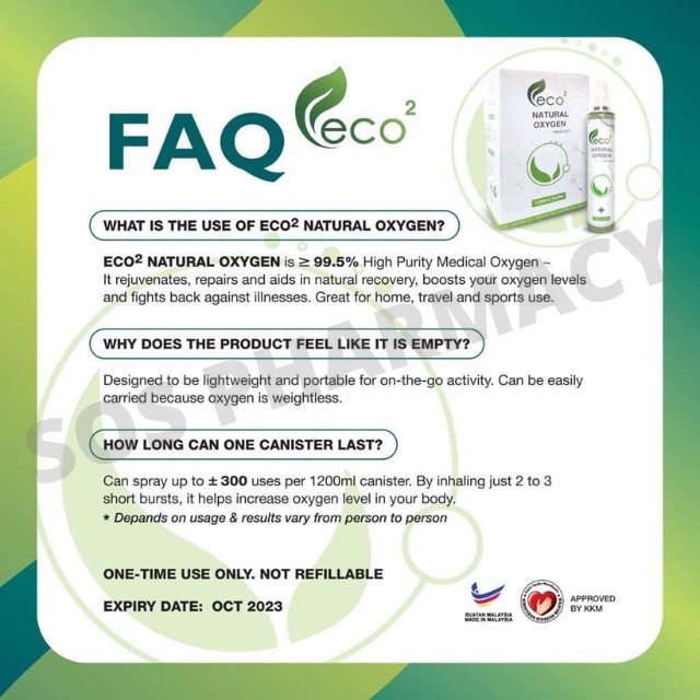 ECO Portable Oxygen Inhaler 1200ml - Pure Safe Health Breath Medical Tank Bantuan Alat Pernafasan Nafas Tangki Oksigen