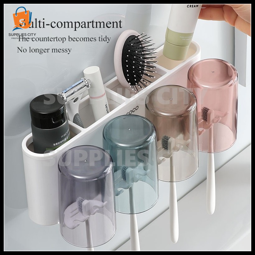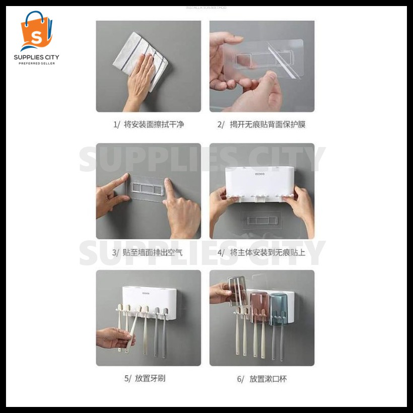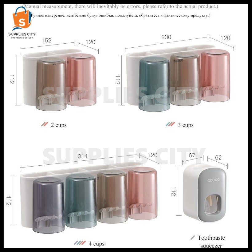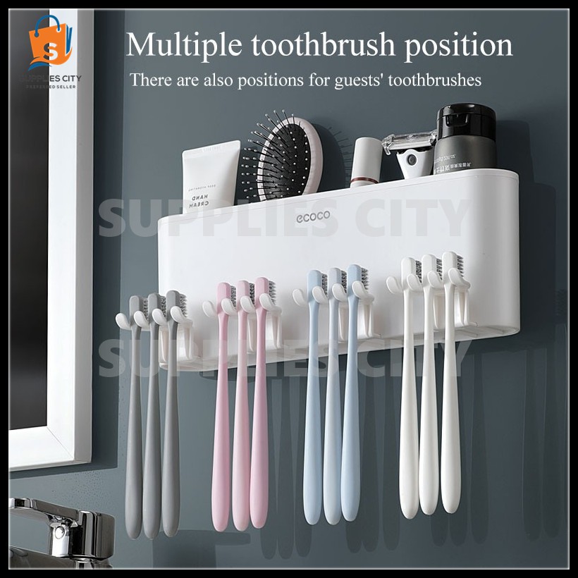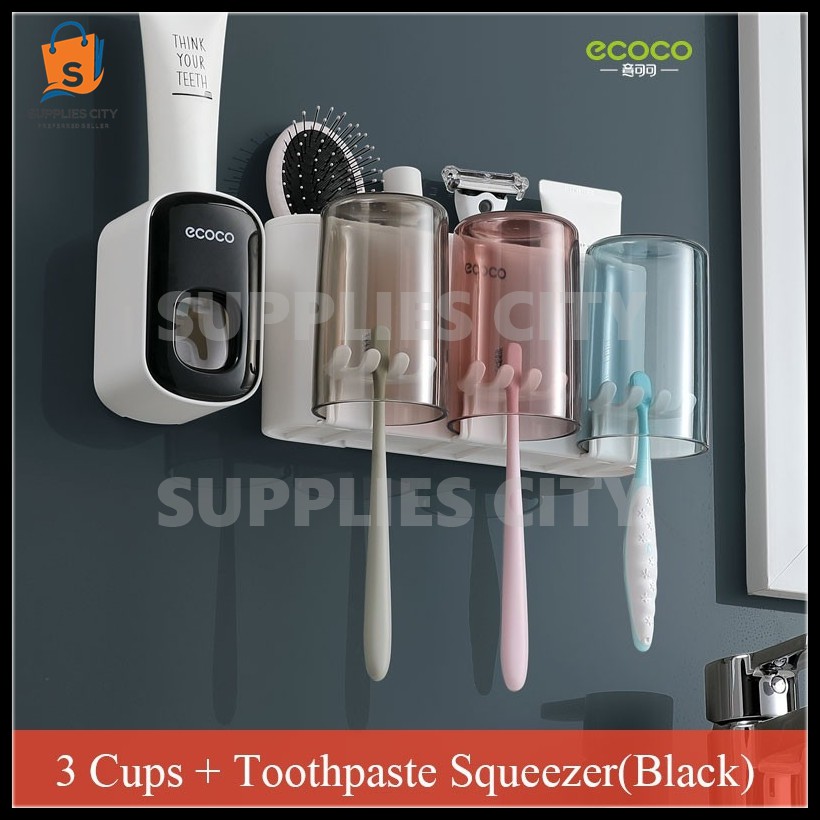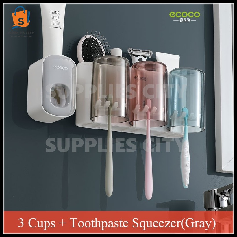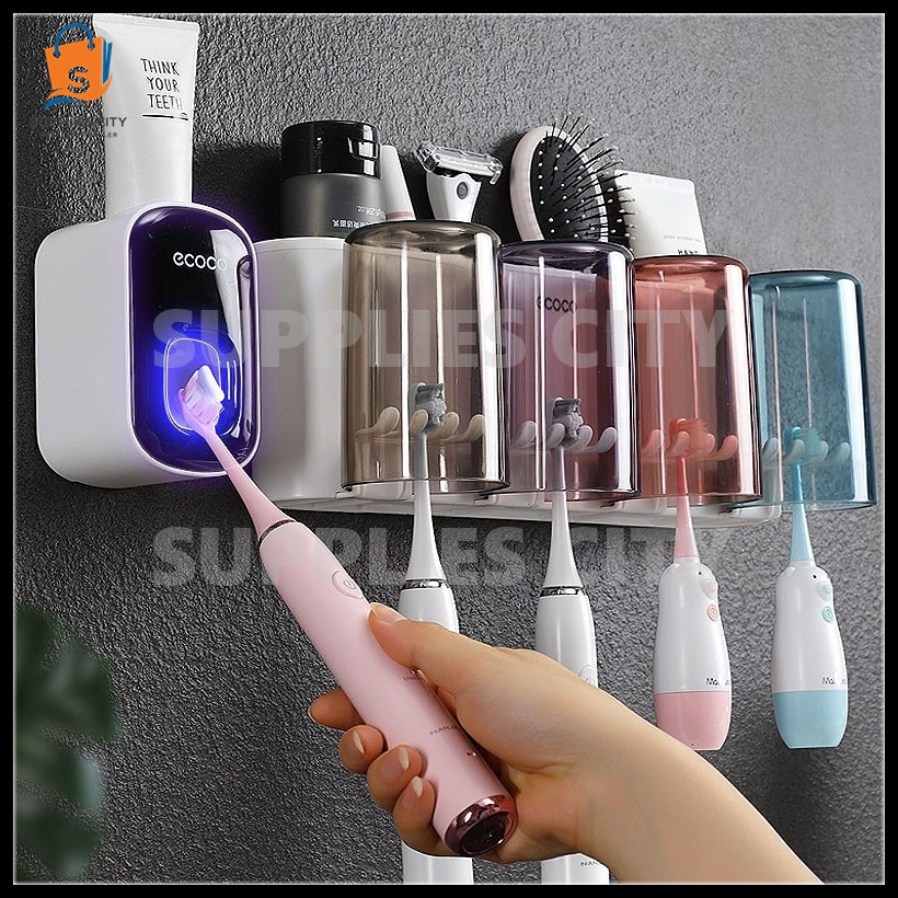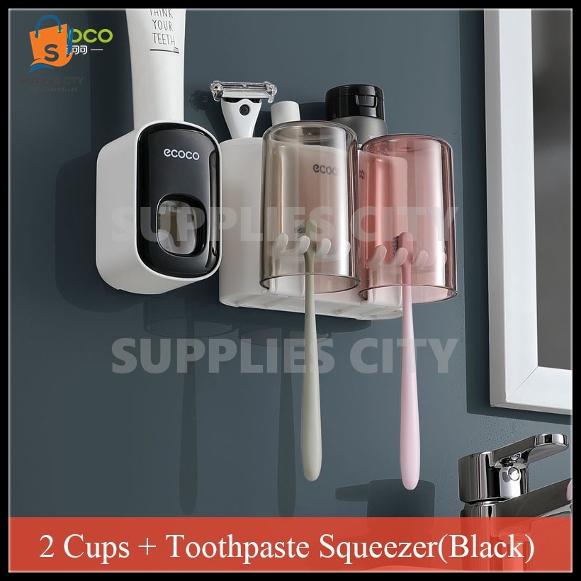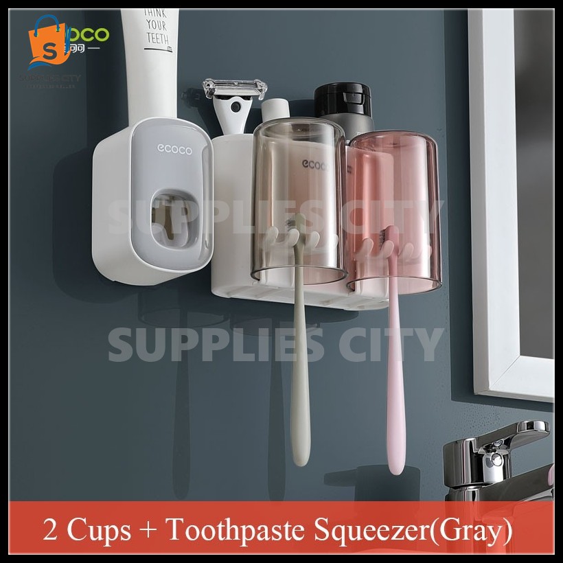 ECOCO Automatic Toothpaste Dispenser Toothbrush Wall Mount Rack Bathroom Organizer Holder 2P 3P
