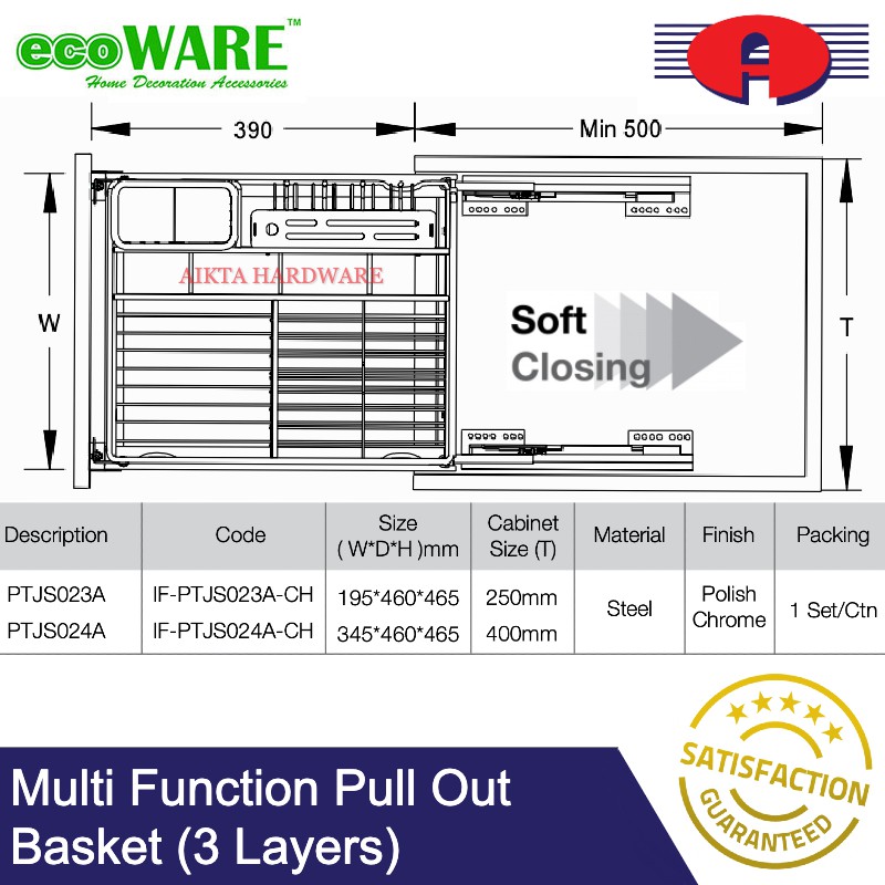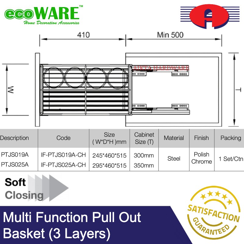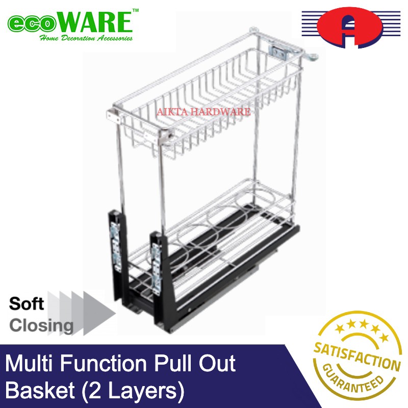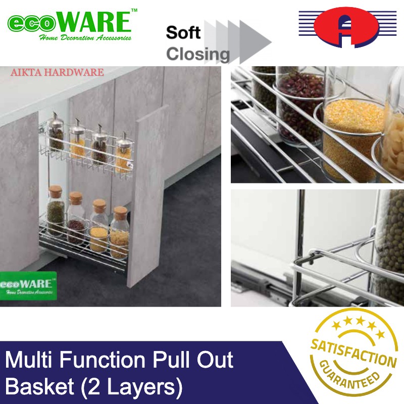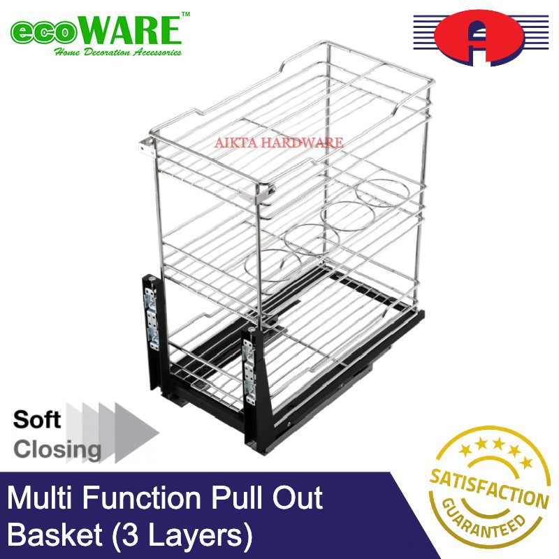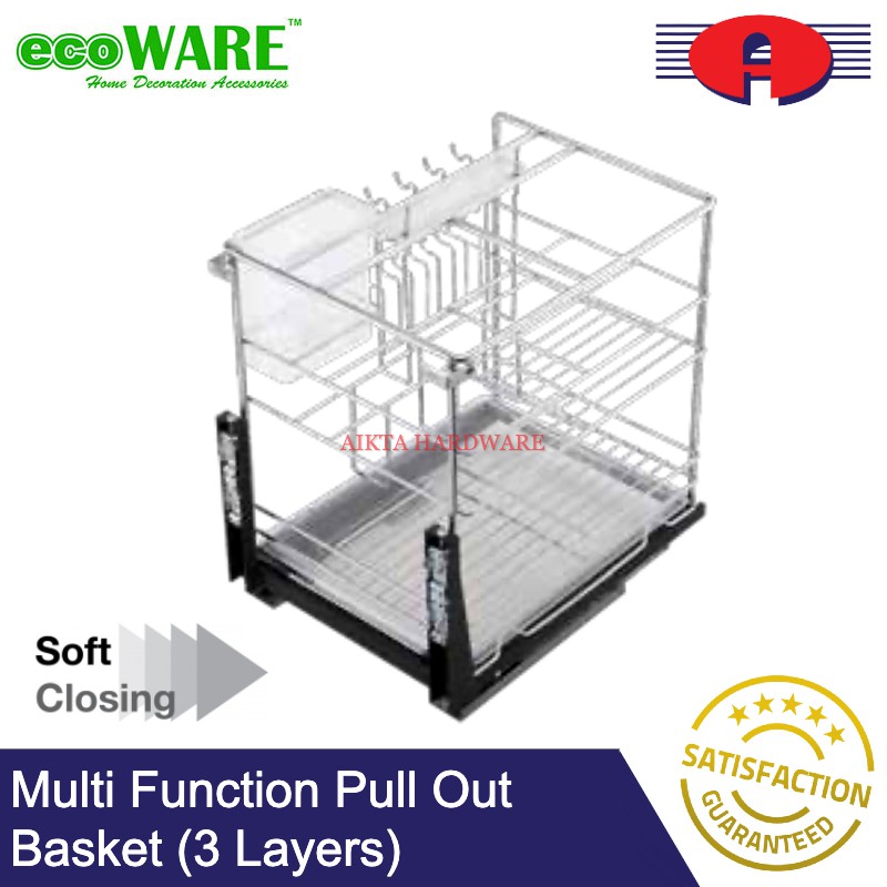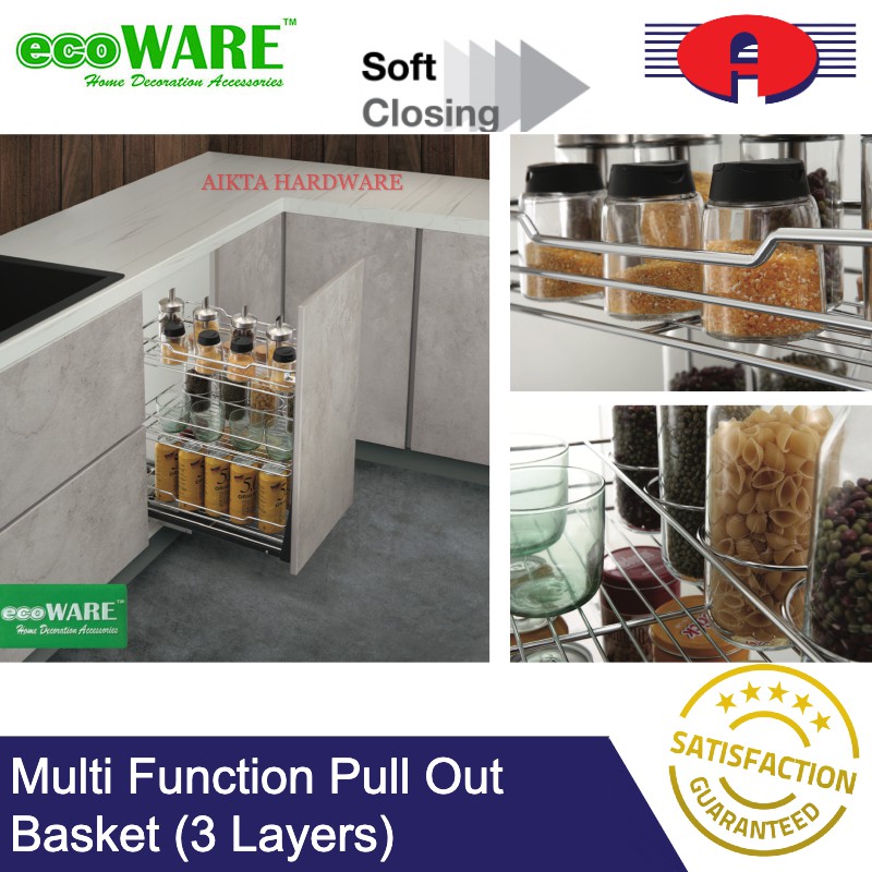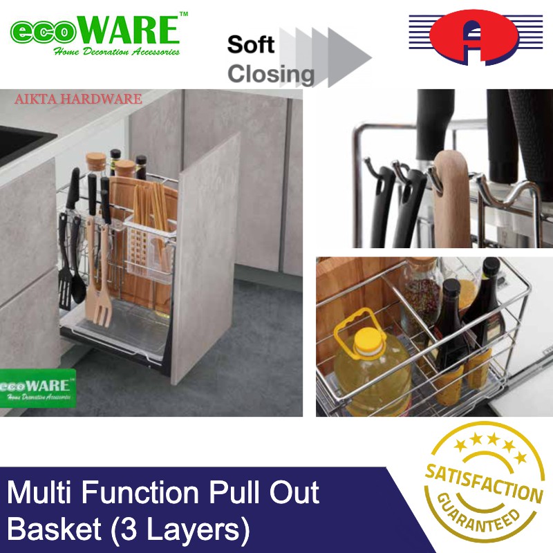 ECOWARE PREMIUM SOFT CLOSE MULTI FUNCTION MULTI LAYERS PULL OUT BASKET KITCHEN BASKET WITH SOFT CLOSING STAINLESS STEEL
