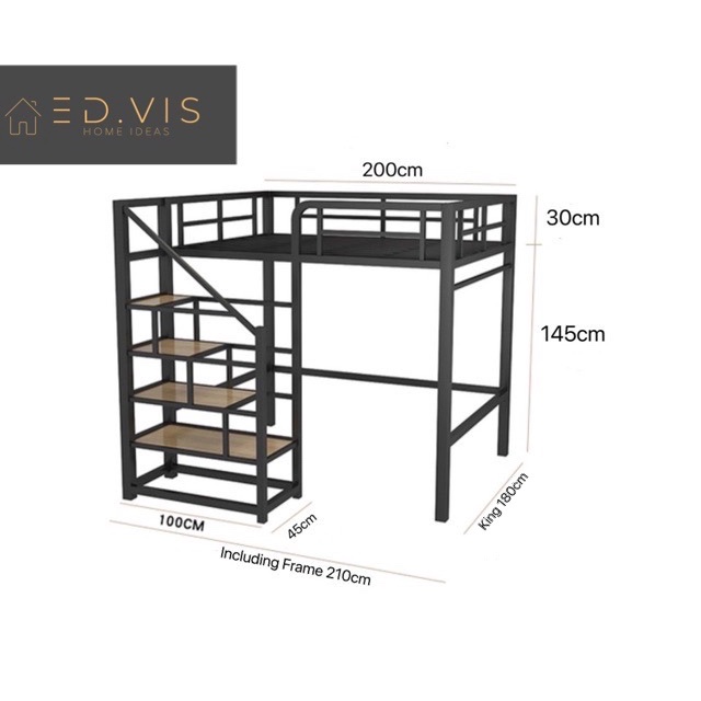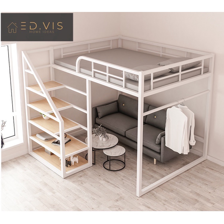 EDV.IS Loft bed upper bunk bed frame front placing wood stair metal frame space savingv[Free Shipping to WM]