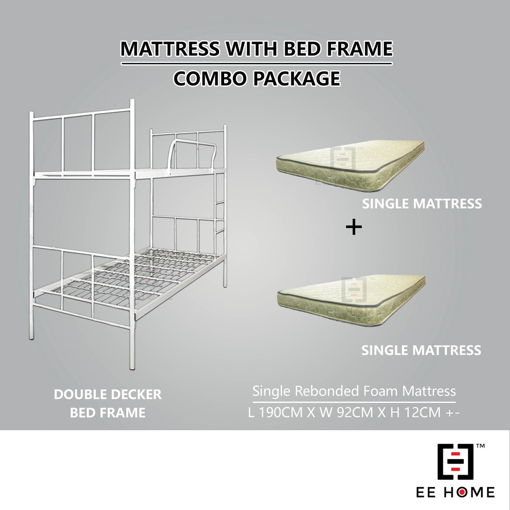EE HOME SET Double Decker Bed Frame + 2 Mattress Single Double Decker & 2 Tilam Bujang4' - CM-BF33
