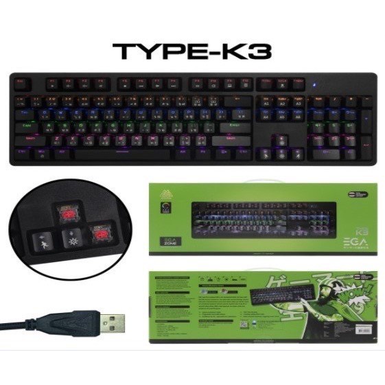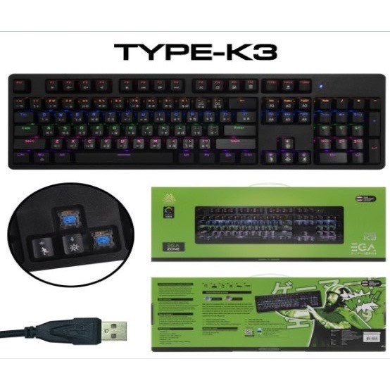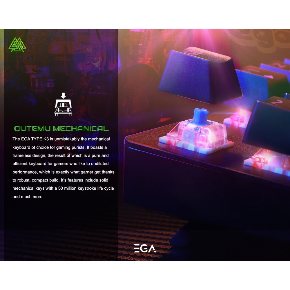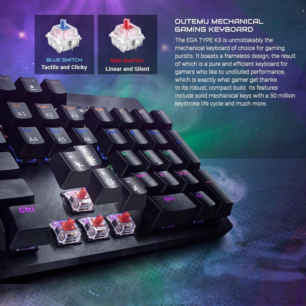 EGA TYPE K3 Mechanical Gaming Keyboard Rainbow Lighting FX RGB Blue/RED Switch (OUTEMU)