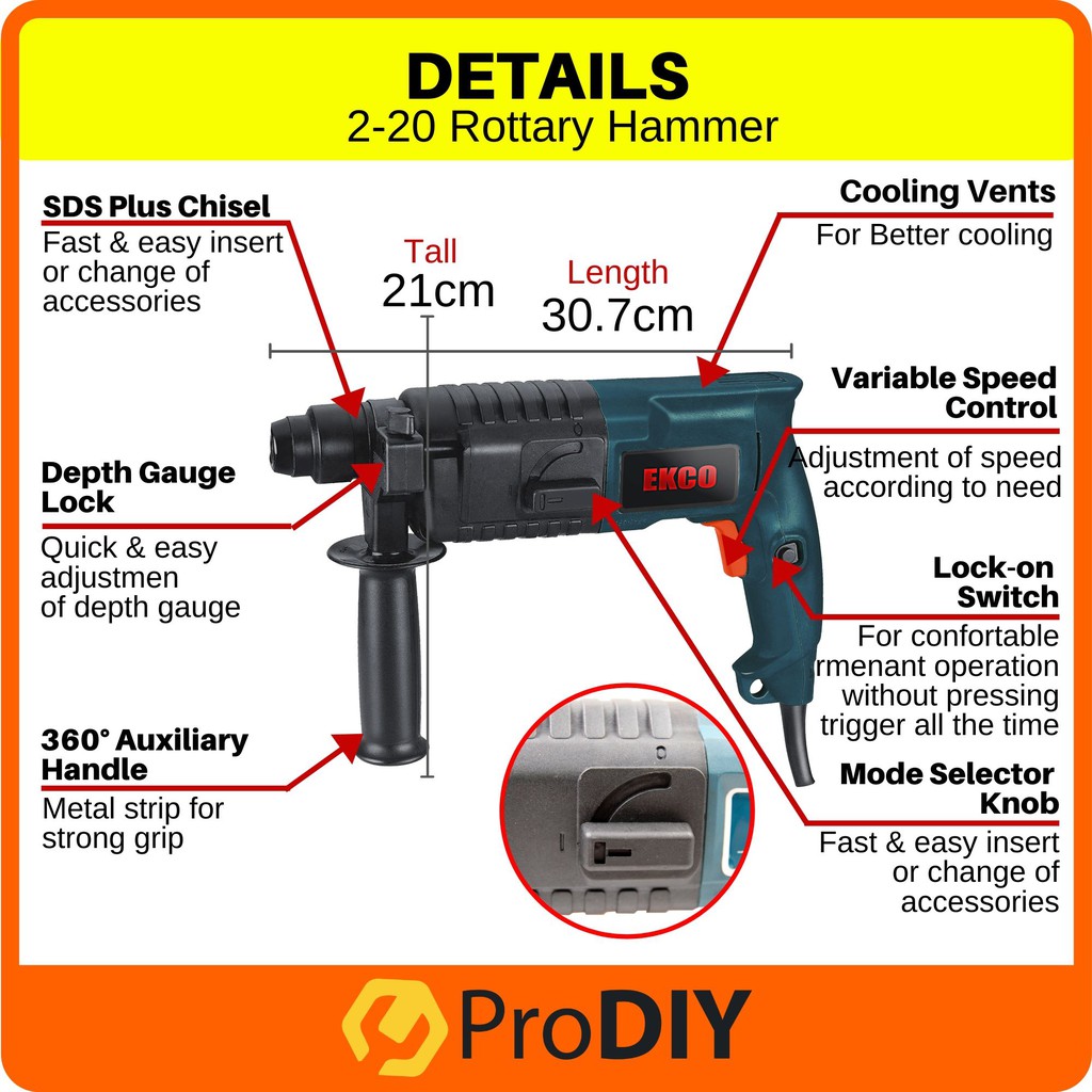 EKCO / FOX GBA 2-20 SRE Drill Rotary Hammer Drill 20mm 2 Mode Come With Handle (RANDOM BRAND)