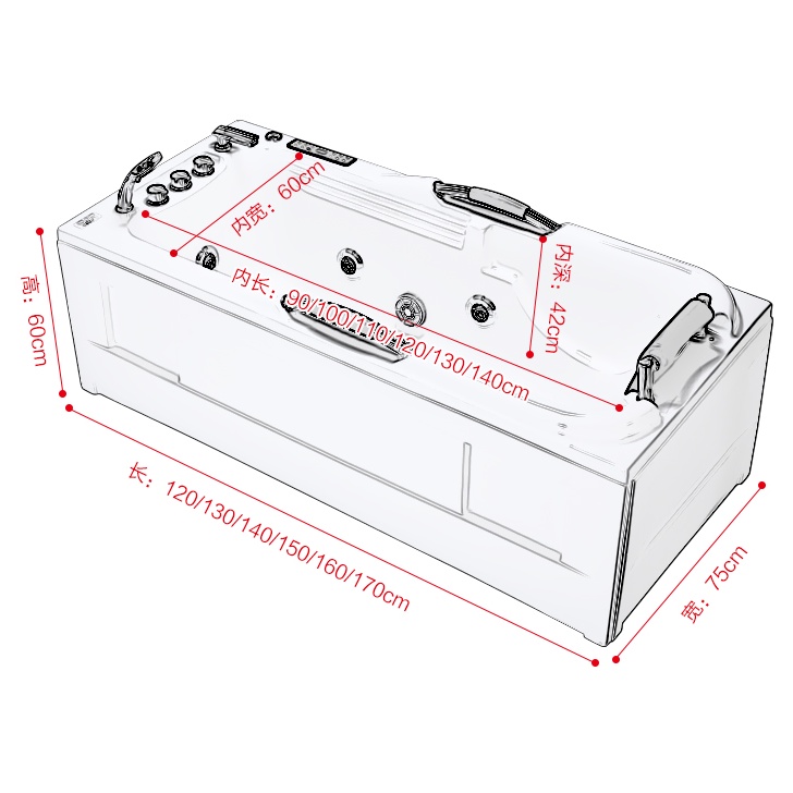 EKSENSE Premium Acrylic Bathtub with Jacuzzi Massage Bubble Bath Tub Adult Tab Mandi Dewasa 按摩浴缸 (1 month pre-order)