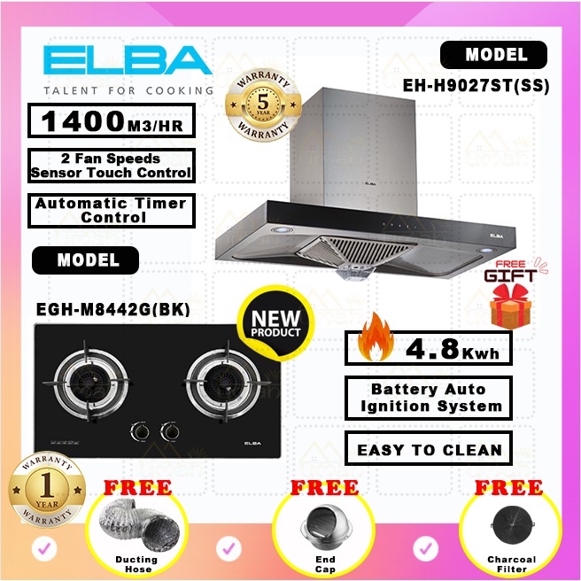 ELBA 9027 Cooker Hood Kitchen Hood With Cooker Hob Gas Cooker Dapur Kitchen Appliances Penyedut Asap Dapur