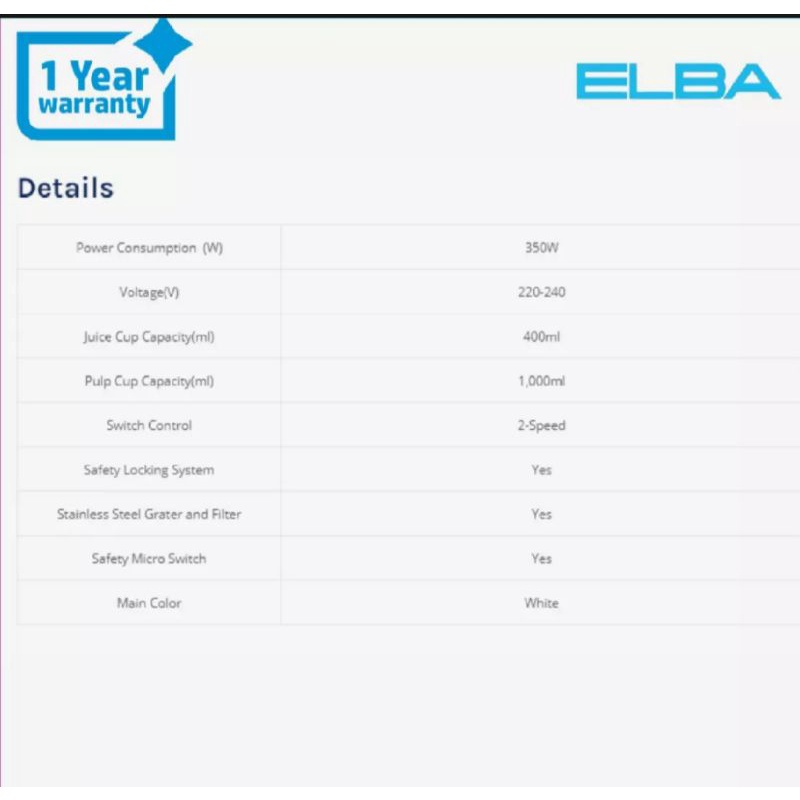 ELBA JUICE EXTRACTOR EJE-A0435(WH)