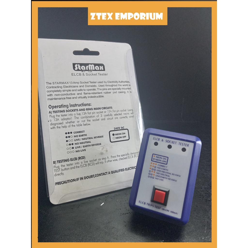 ELCB TRIPS & SOCKET TESTER TEST FOR POWER SUPPLY SAFETY SM-ES1630 13 AMP 13A 300mA PENGUJI ELECTRIC ELETRIK ADAPTOR RCD