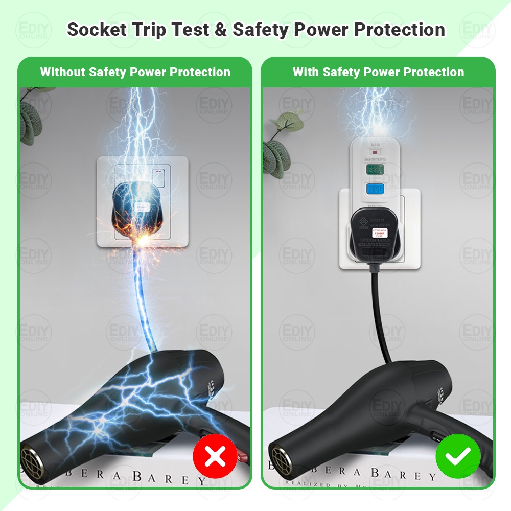ELCB TRIPS & SOCKET TESTER TEST POWER SUPPLY SAFETY SM-ES1630 13 AMP 13A 300mA PENGUJI ELECTRIC ELETRIK ADAPTOR RCD RCCB