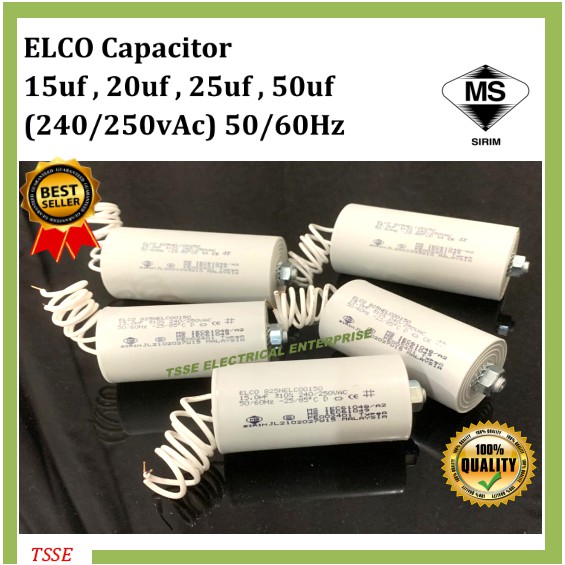 ELCO Lighting Capacitor 240/250V 15uf 16uf 20uf 25uf 40uf 50uf (Sirim) 50/60Hz