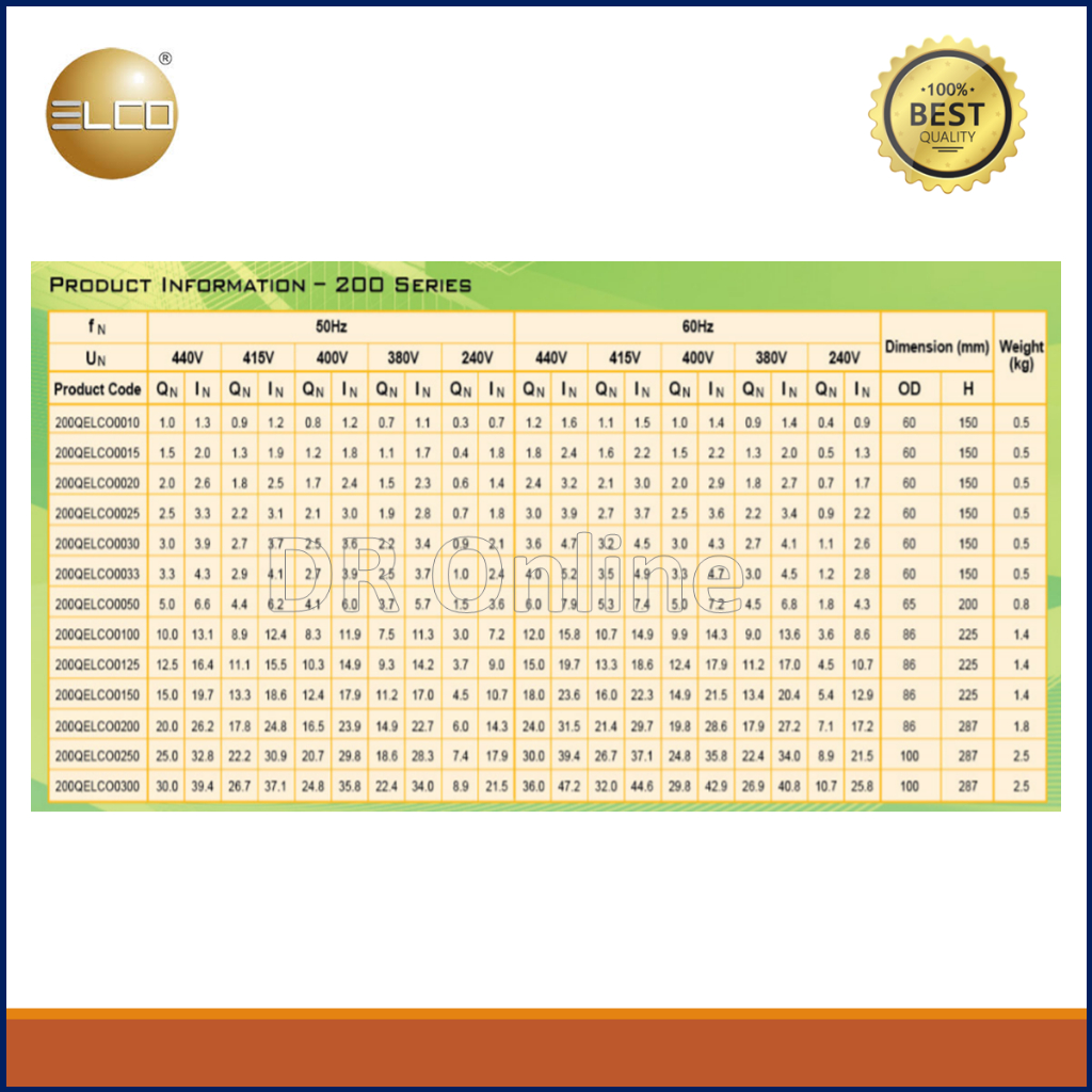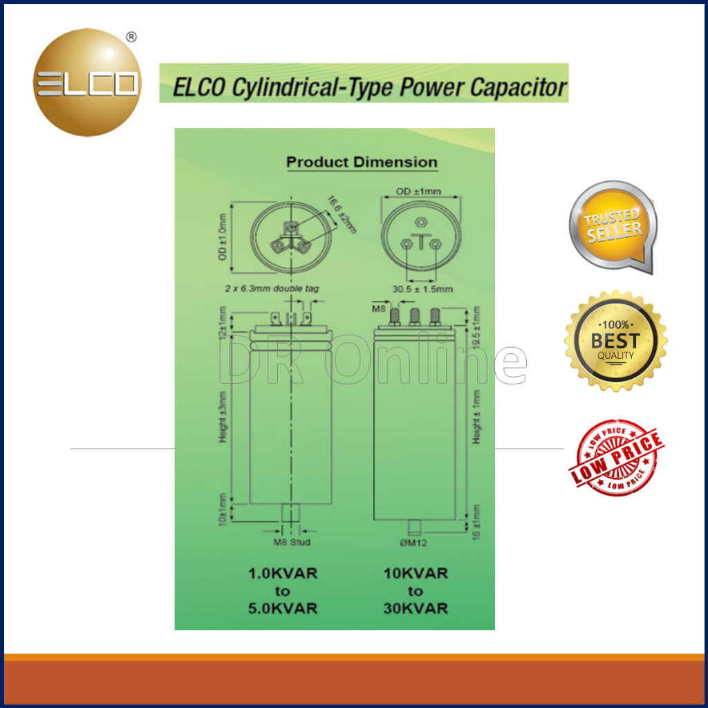 ELCO Power Capacitor bank Cylinder Type 10kvar/15kvar/20kvar/25kvar 440V C/w Cable