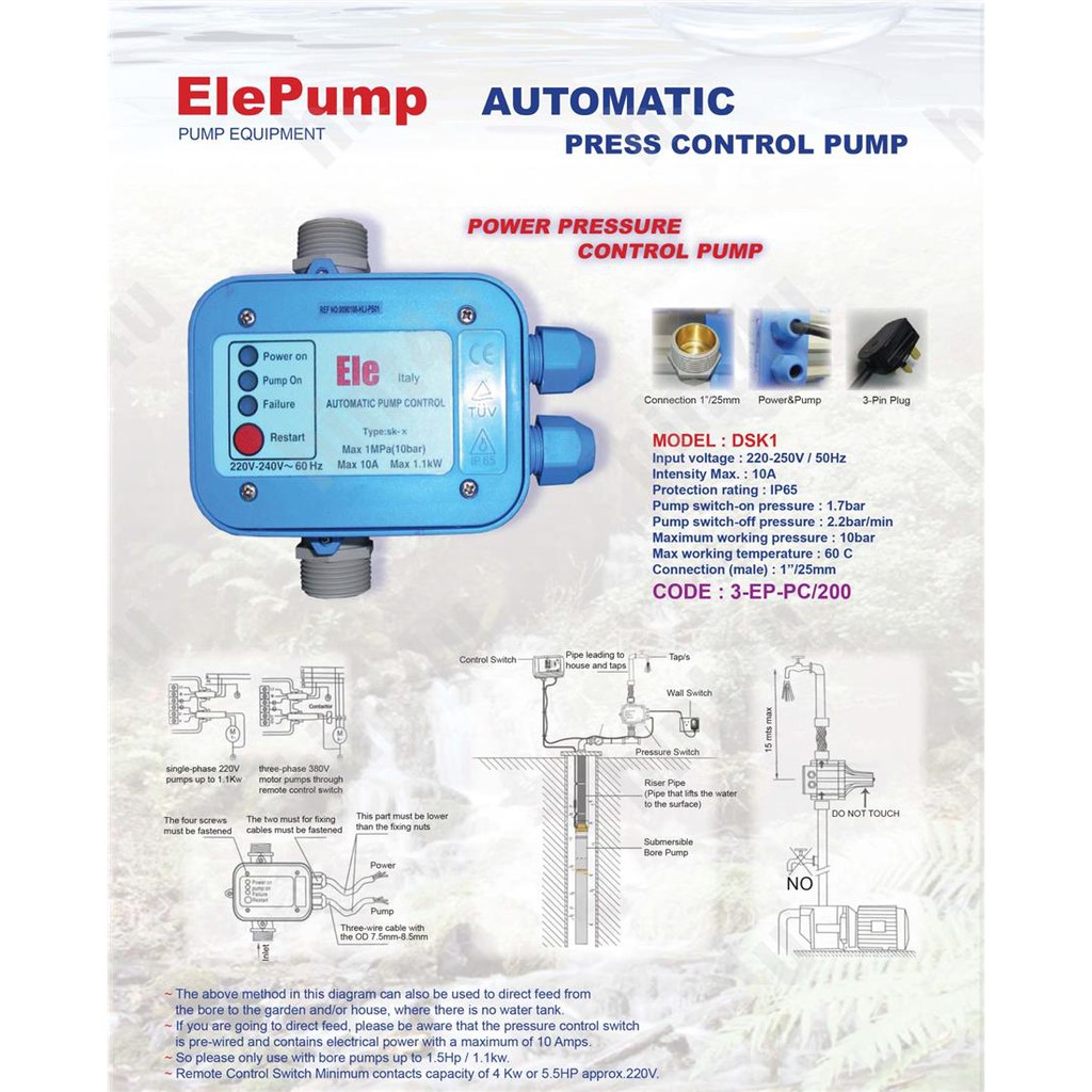 ELEPUMP DSK-1 HOME WATER PUMP AUTOMATIC PRESS CONTROL