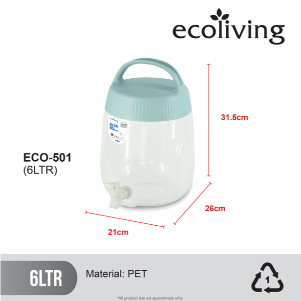 ECO LIVING 6Ltr Water & Juice & Detergent Storage Dispenser, Water Cooler, Drink Jar, Bekas Air Tong, ECO-501