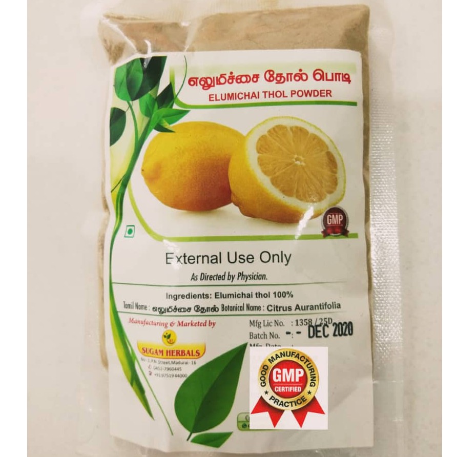 ELUMICHAI /PURE LEMON peel FRUIT SKIN POWDER / FACE MASK / FACE PACK / Skin-Whitening and Anti-Aging 100% NATURAL 50 gms