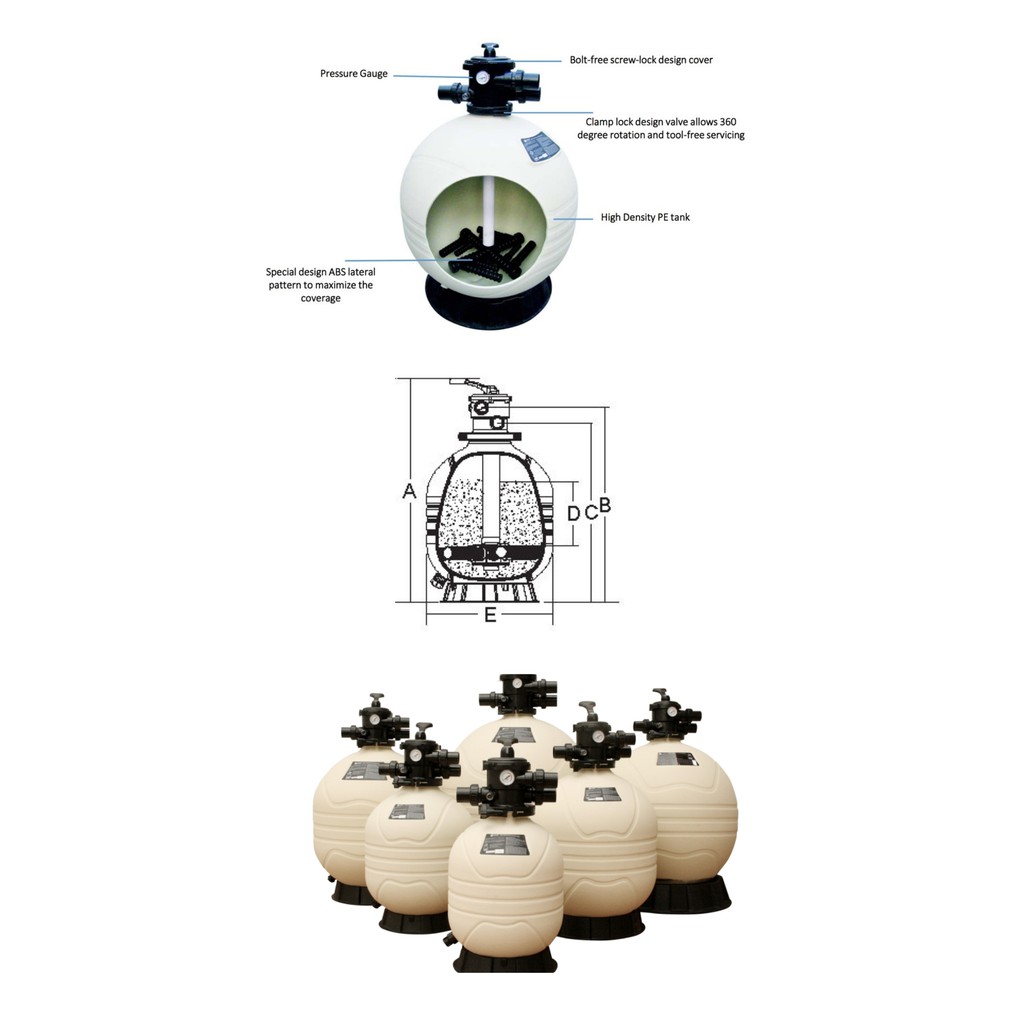 EMAUX MFV 27A 40mm (1.5") connectorTOP MOUNT PLASTIC SAND FILTER 27" (NOT INCLUDE SAND) - SWIMMING POOL FILTRATION