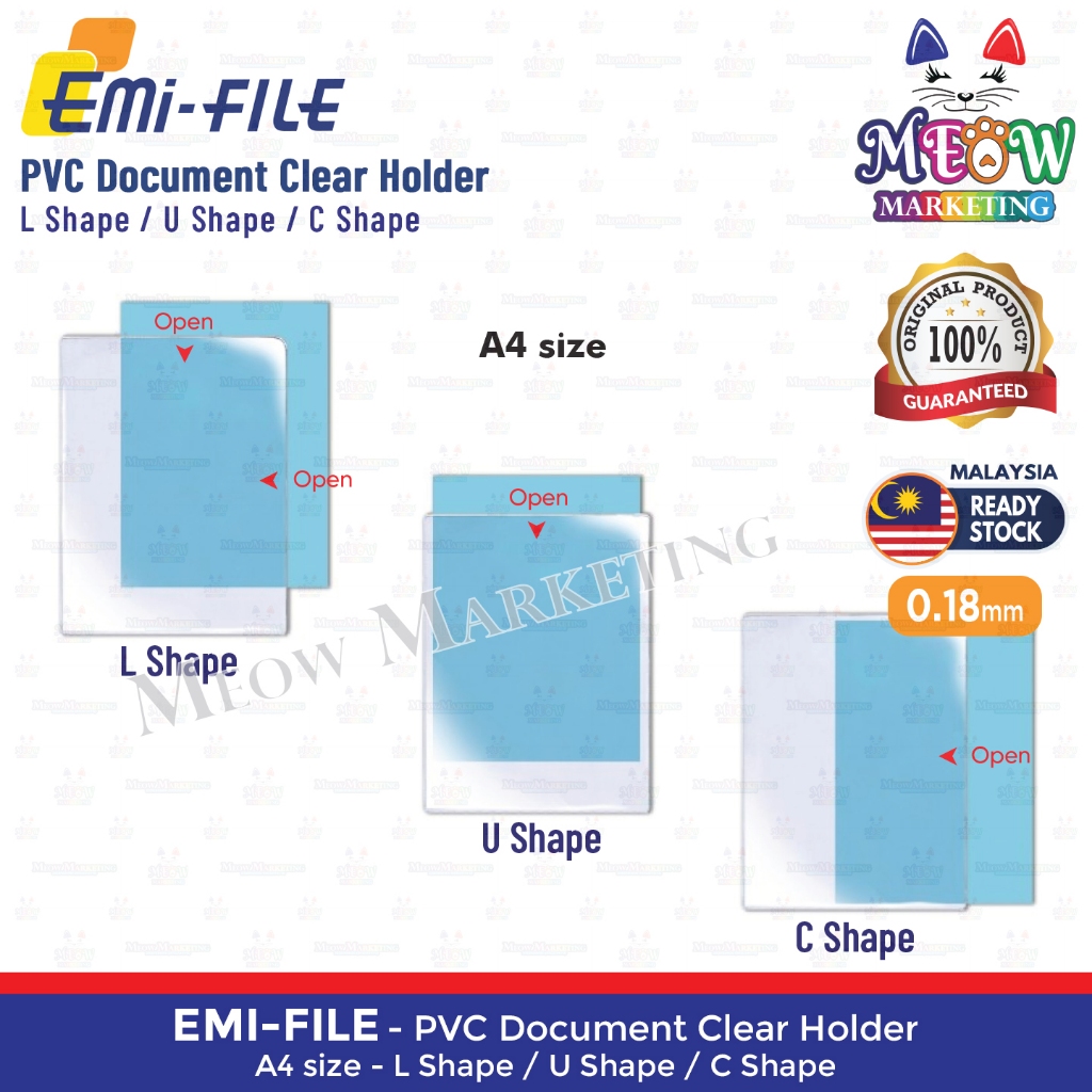 EMI File PVC Document Clear Holder A4 / A3 - L Shape File / U Shape File / C Shape File