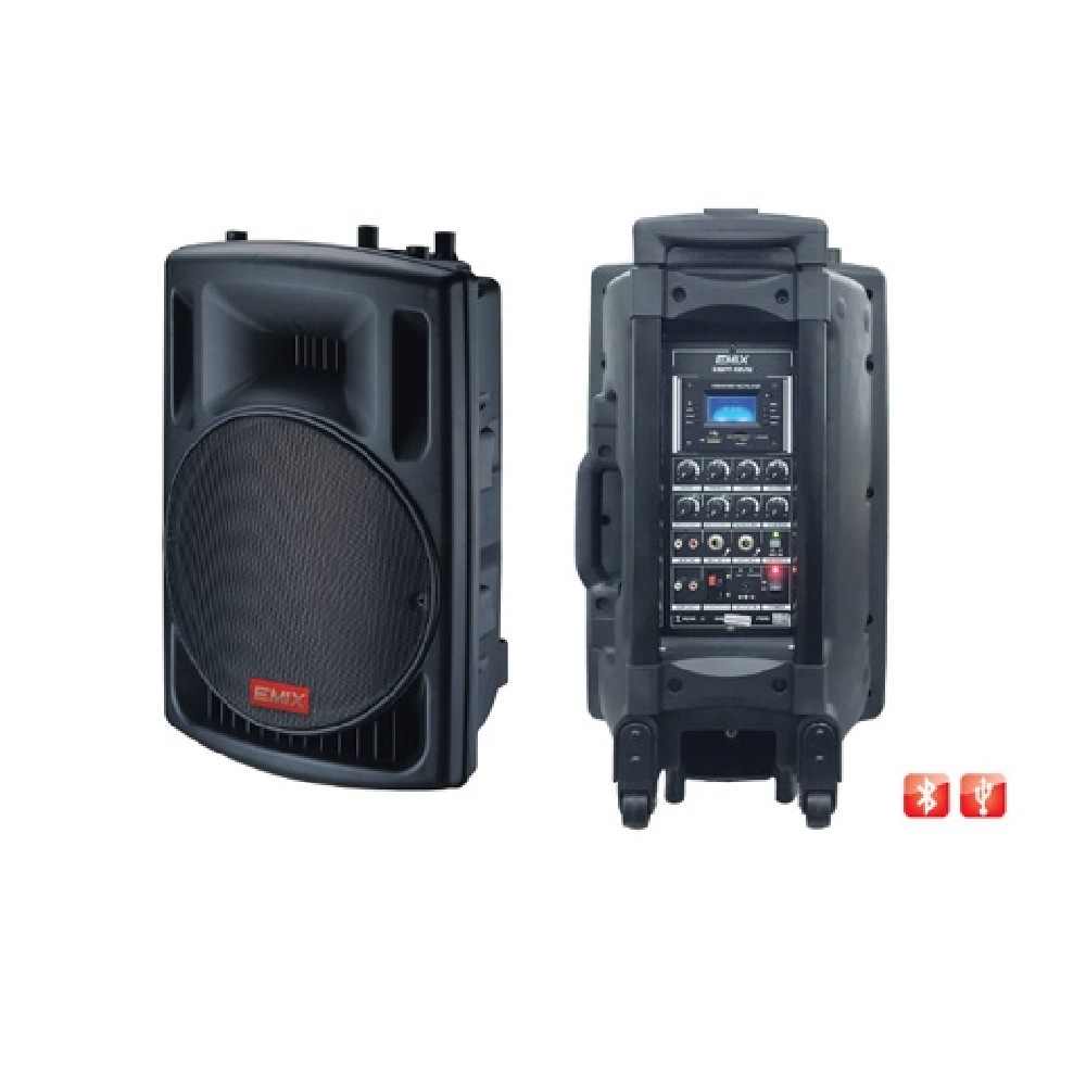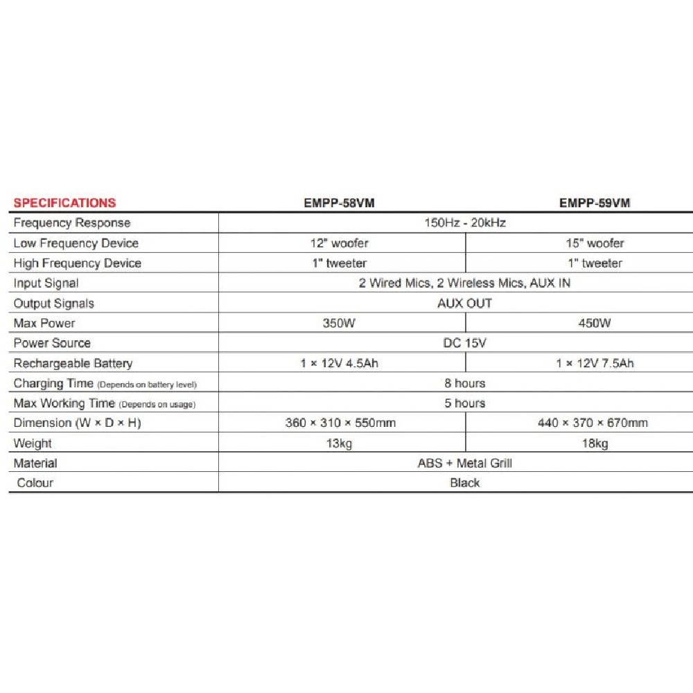 EMIX EMPP-58VM 12" 350W Portable Amplifier c/w Bluetooth, USB Player and Recorder, 2 x Wireless Handheld Microphone