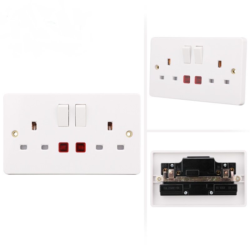 EMK 13A 2 Gang Switch Socket Neon (Bakelite)