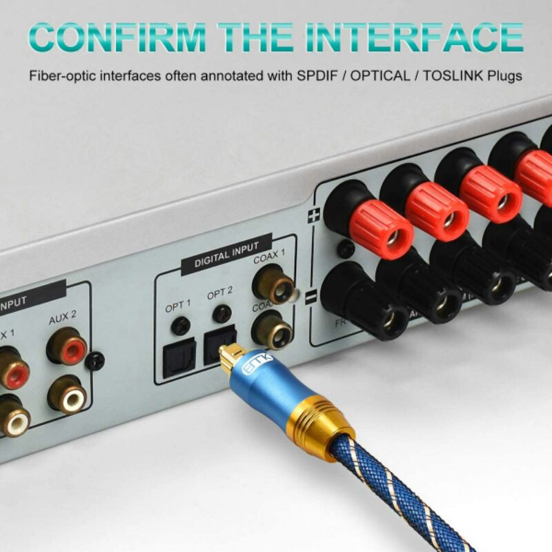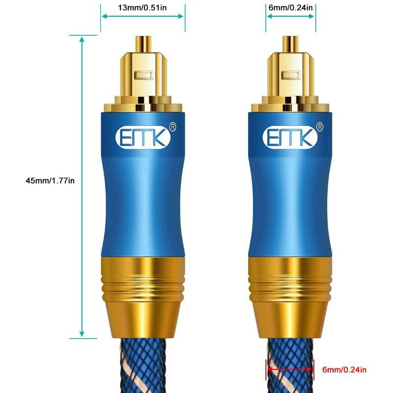 EMK 24K OPTICAL CABLE HI-FI SPDIF Fibre Optic Digital Audio Cable Toslink Nylon Braided Home Theater ,Soundbar,LED Tv