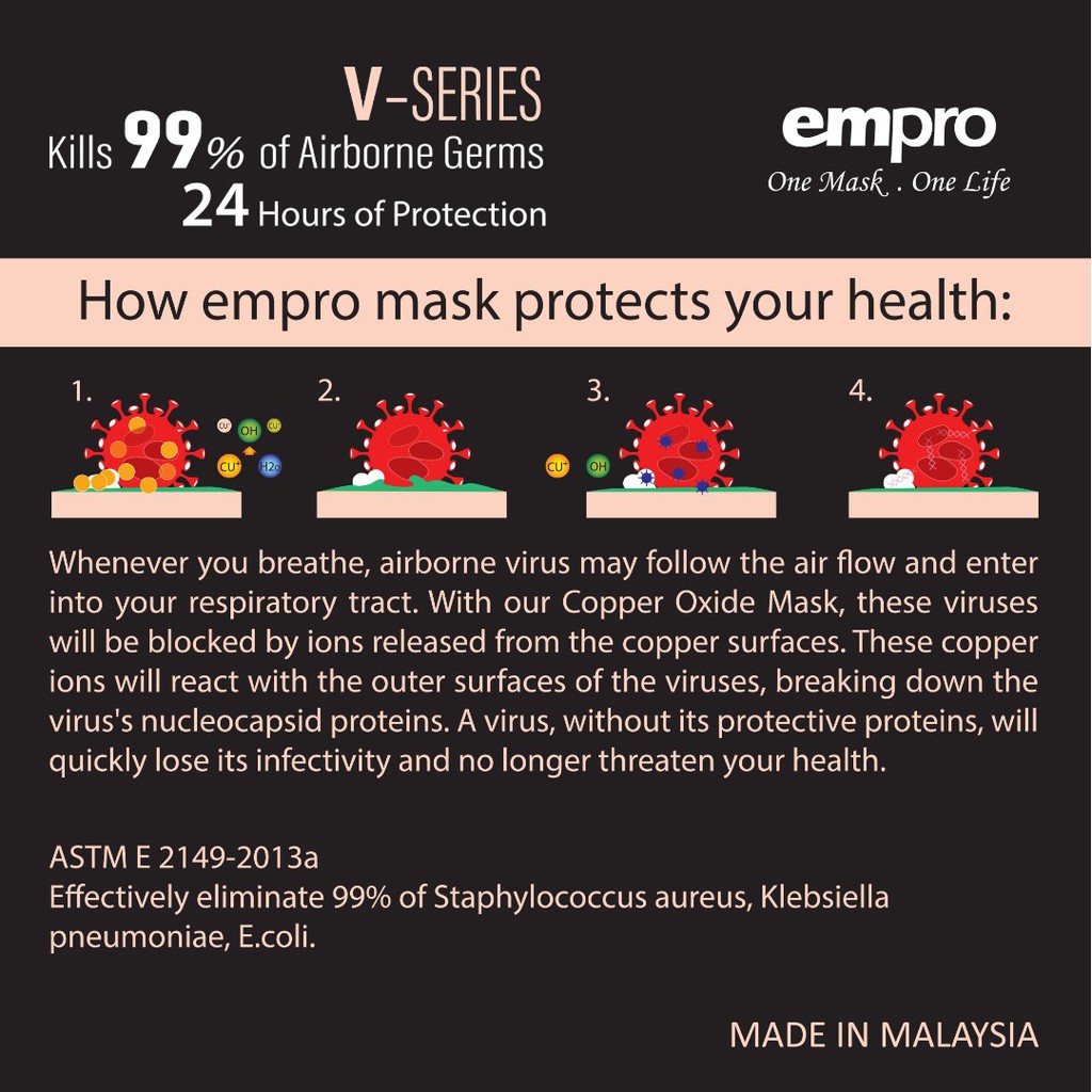 EMPRO Copper Oxide Mask [ Anti-Microbial Surgical Face Mask] V SERIES - KILL 99% OF AIRBORNE GERMS
