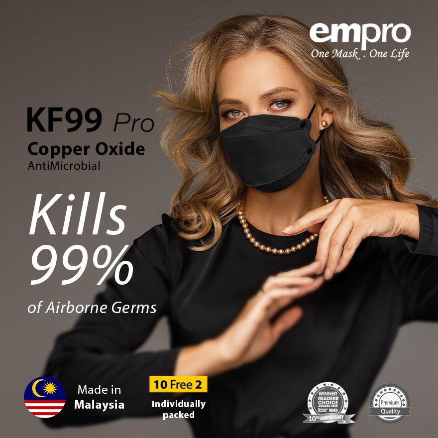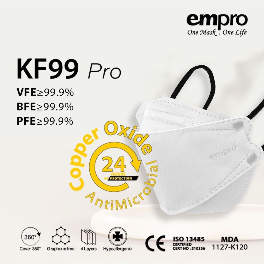 EMPRO RESPIRATOR KF99 PRO COPPER OXIDE ANTIMICROBIAL FACE MASK VFE/BFE 99% 10s+2s
