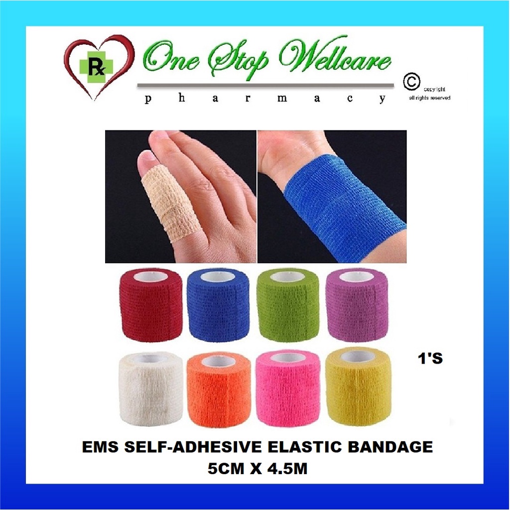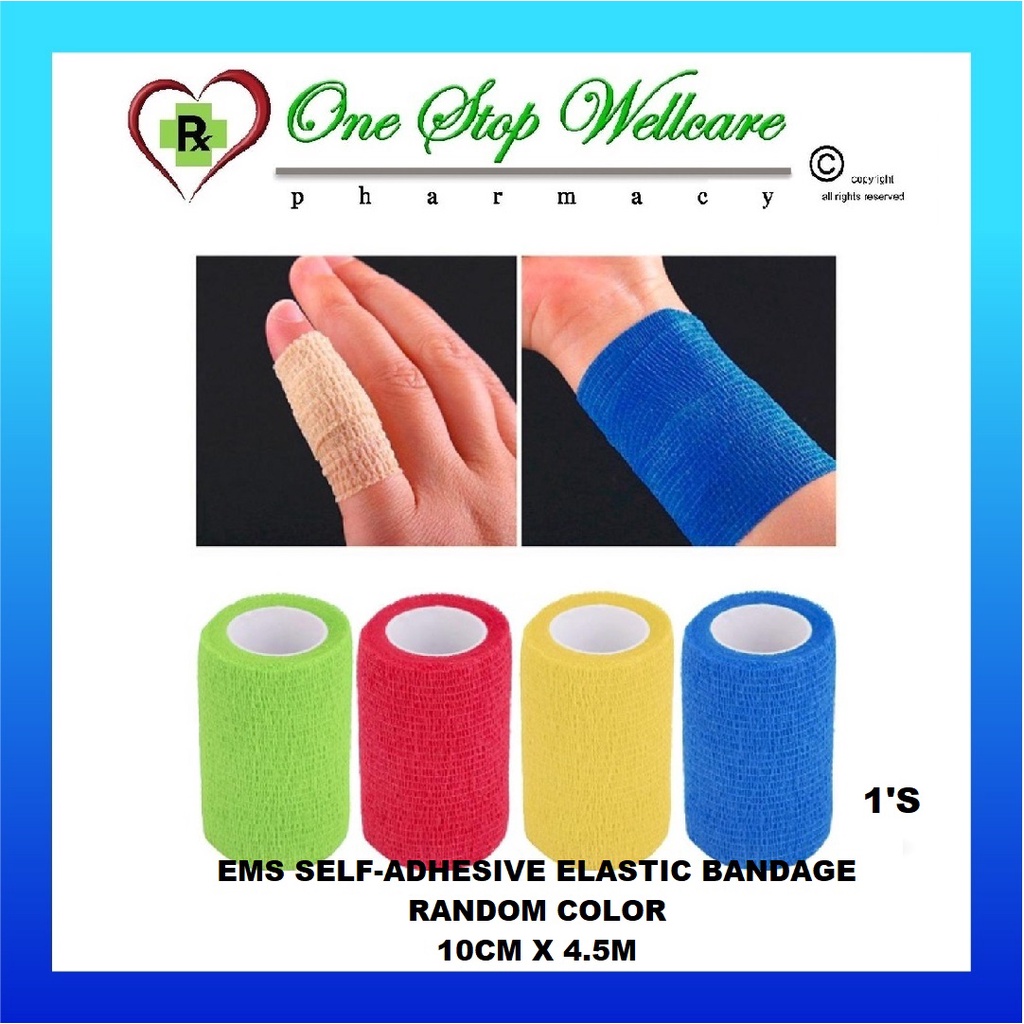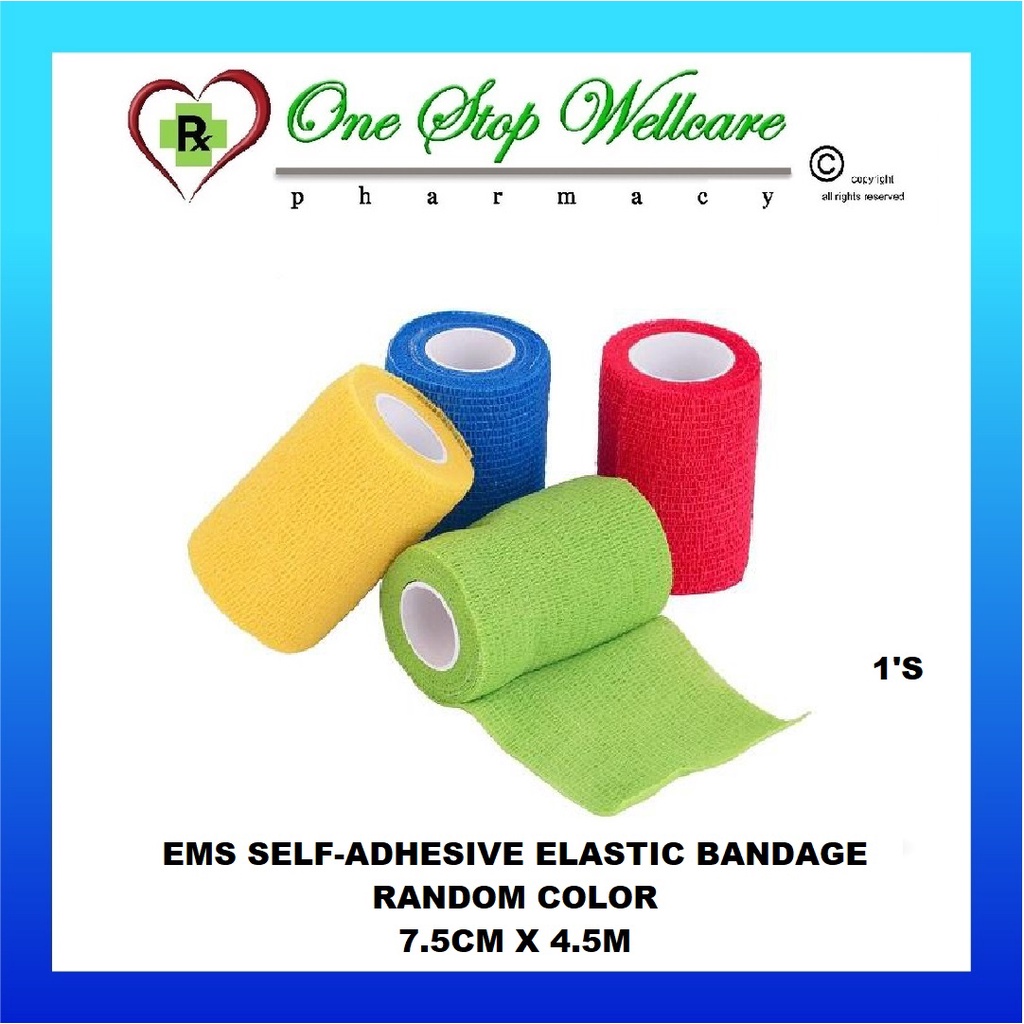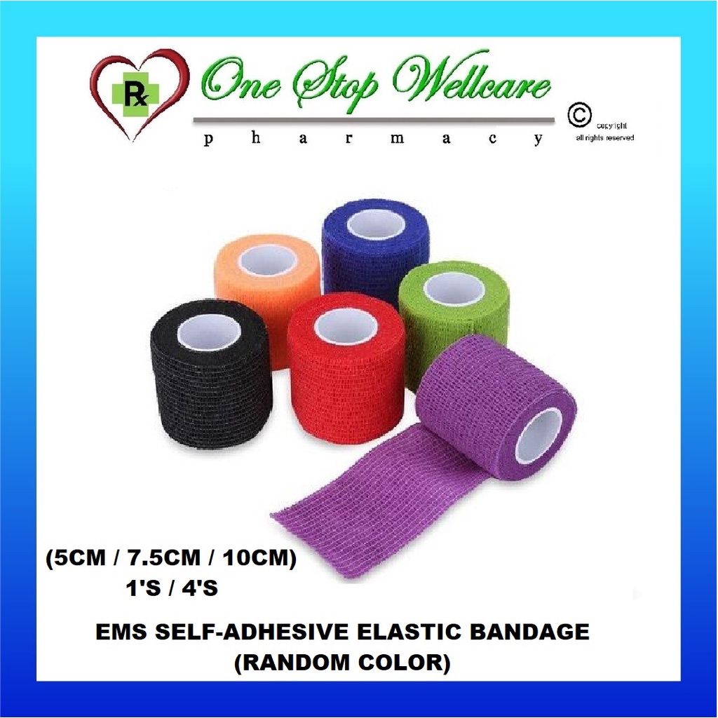 EMS SELF-ADHESIVE ELASTIC BANDAGE RANDOM COLOR (2.5CM X 4.5M / 5CM X 4.5M / 7.5CM X 4.5M / 10CM X 4.5M) 1'S / 4'S