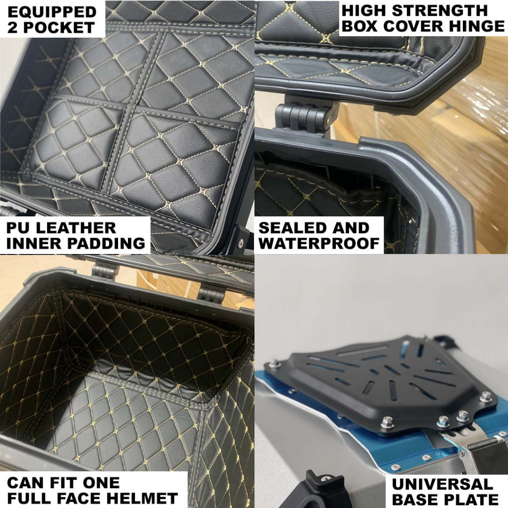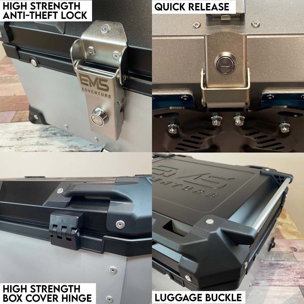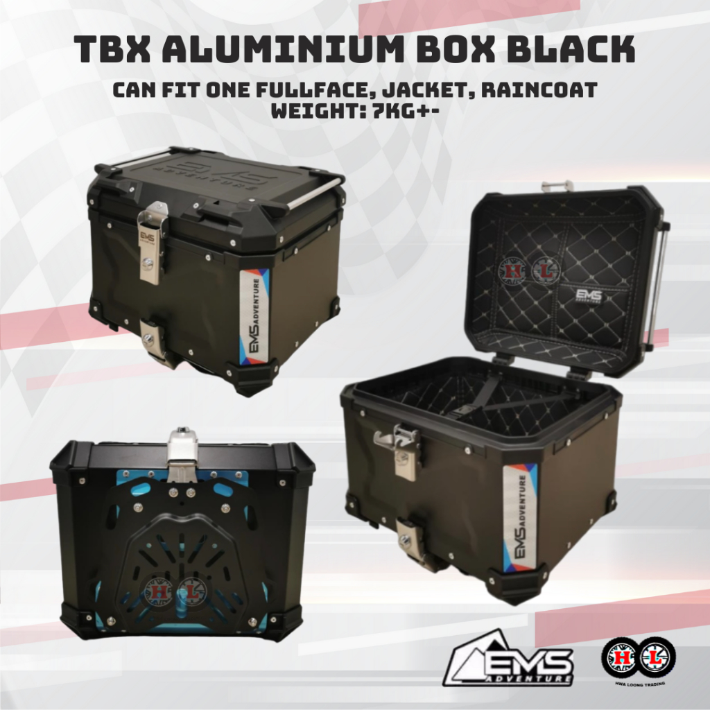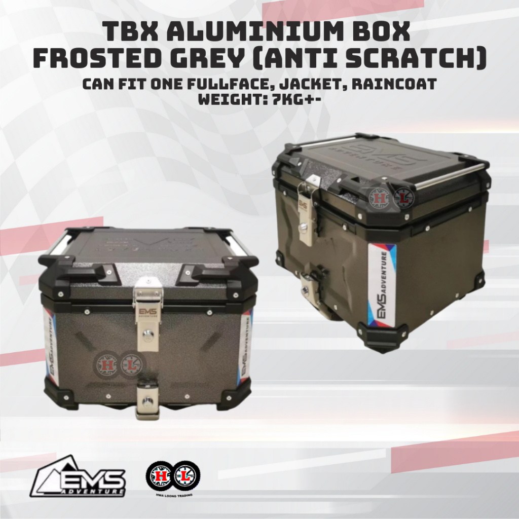 EMS TOP BOX ALUMINIUM 45L MOTORCYCLE BOX -TBX ALUMINIUM 45L Original EMS Aluminium Storage Box With Universal Base Plate
