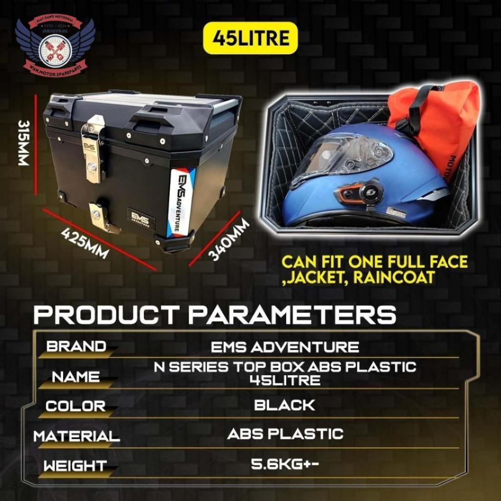 EMS TOP BOX N SERIES ABS PLASTIC 45 LITER MOTORCYCLE BOX Design ABS Plastic Box Original With Base