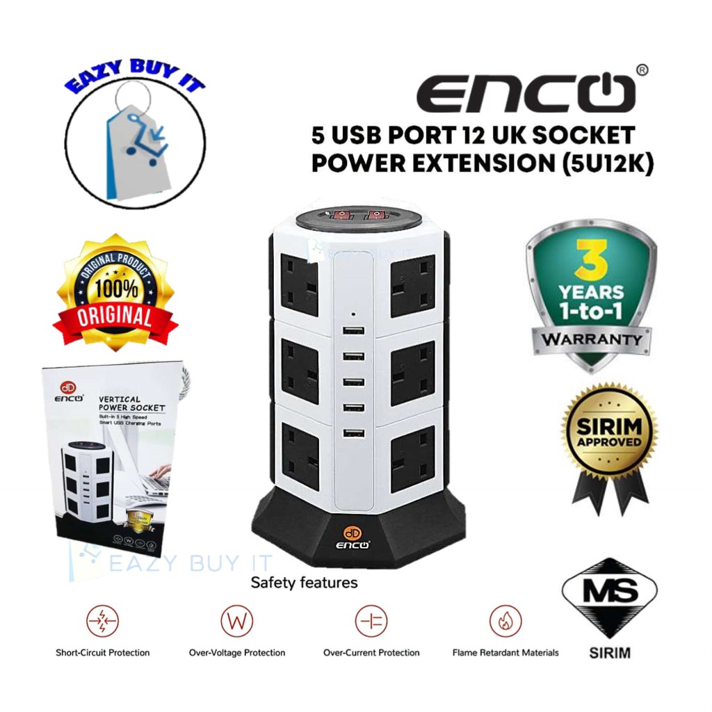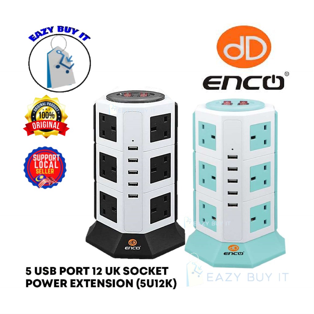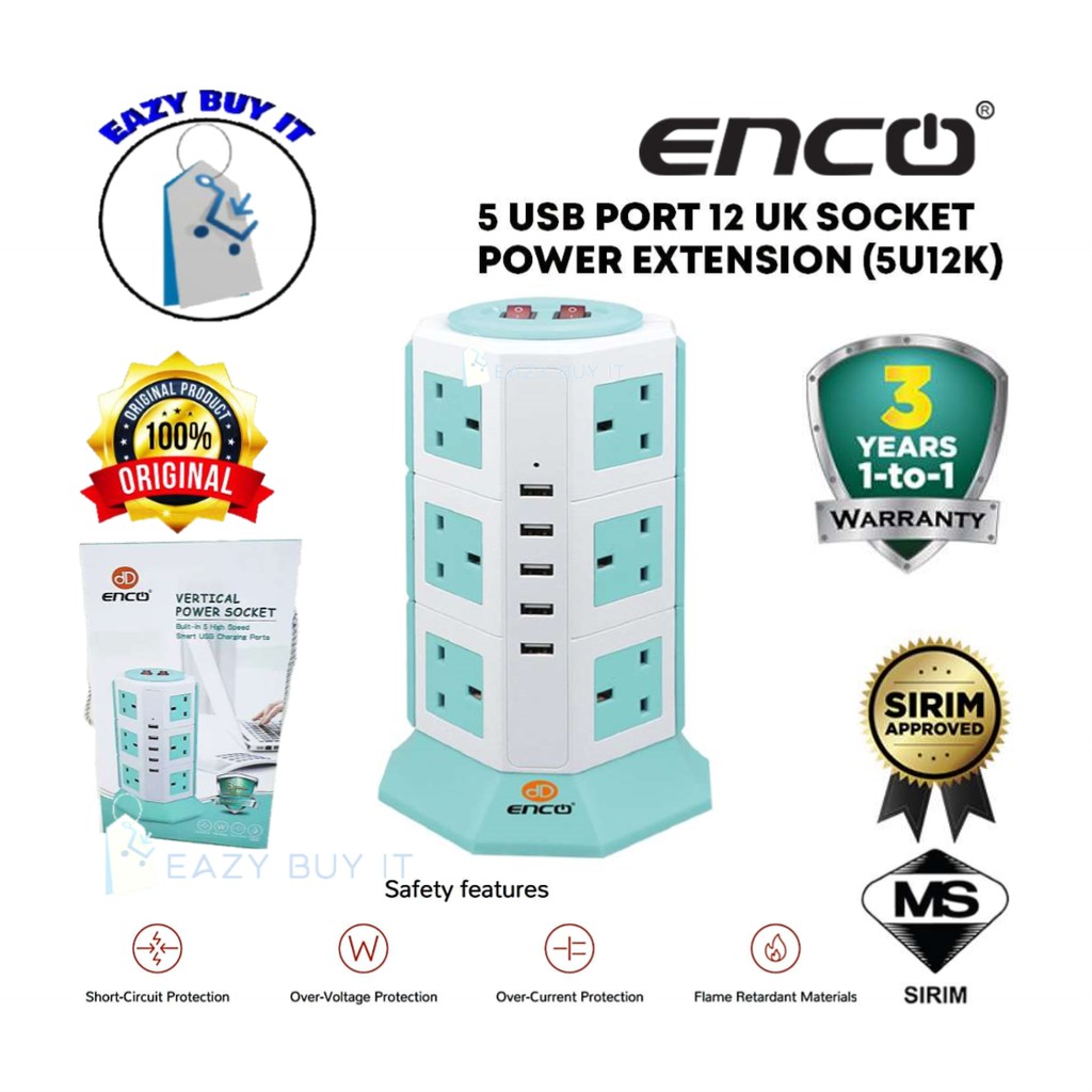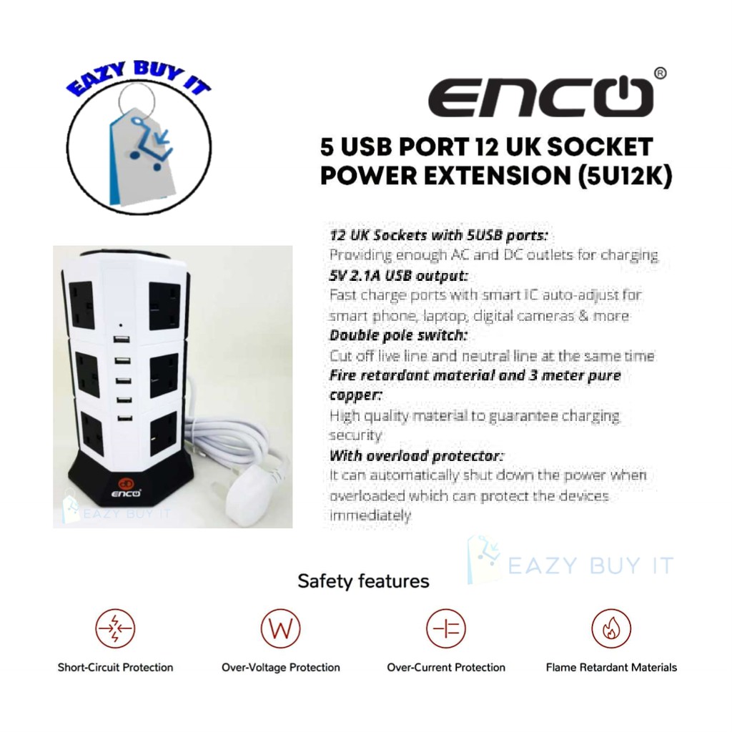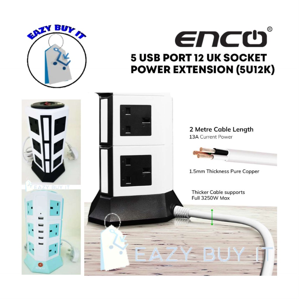 ENCO EXTENSION PLUG TOWER 12 SOCKETS + 5 USB PORTS WITH SURGE PROTECTOR [2M/BLUE&BLACK]