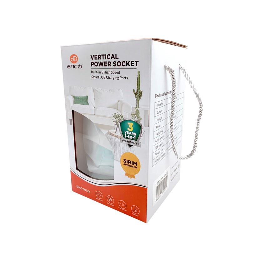 ENCO Extension Plug Tower Sockets With Surge Protector 12 Sockets 5 USB Port With SIRIM Approved - Black Series