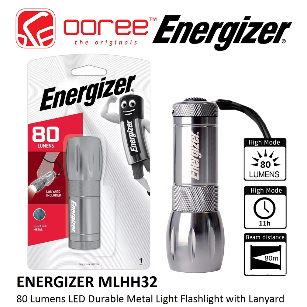 ENERGIZER MLHH32 / MLHH32WOB 80 LUMENS LED METAL LIGHT WITH LANYARD DURABLE FLASHLIGHT TORCHLIGHT