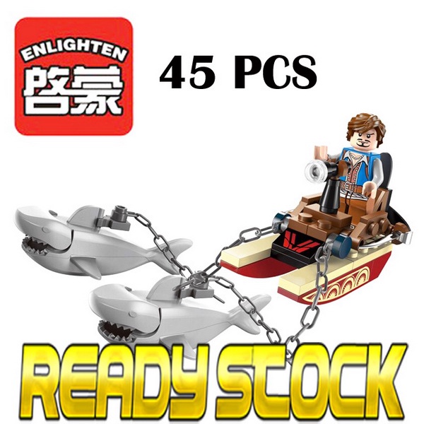 ENLIGHTEN Brand Enlighten Blocks 1302 Legendary Pirates Series Shark Warship Bricks 45 Pcs Blocks Sets Blok Mainan