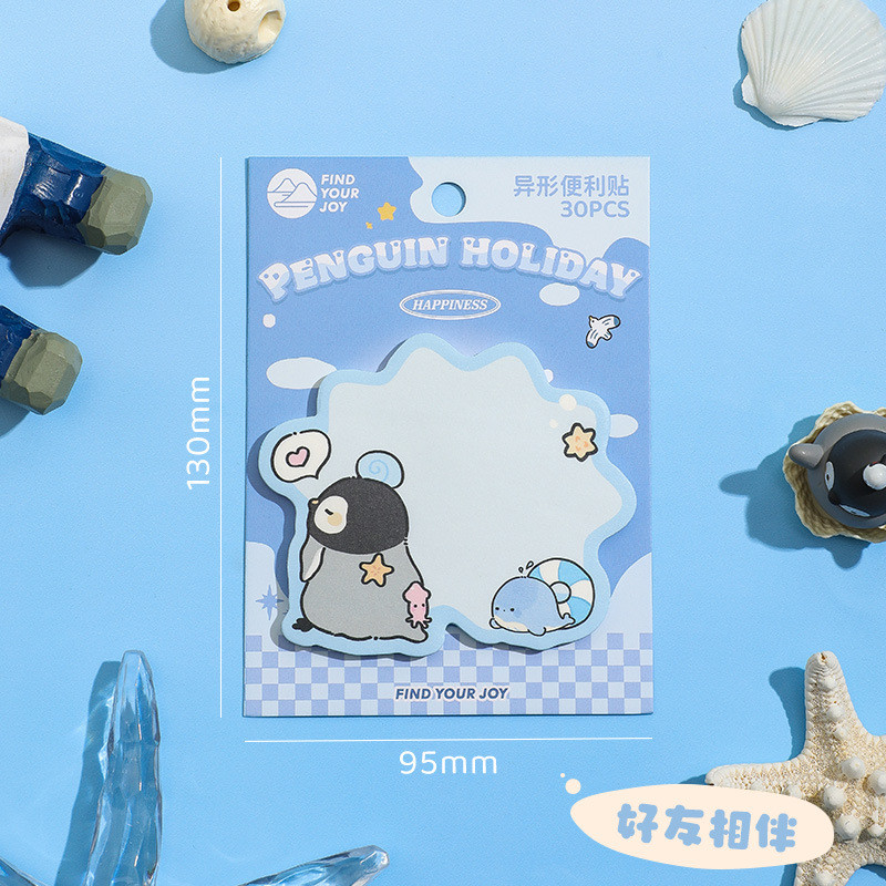 ENWEI 30 Sheets Penguin Vacation Series Writing Paper Sticky Notes Cartoon Unique Shape Memo Pads with Cute Designs for Study Planning School Supplies Kawaii Stationery Collection