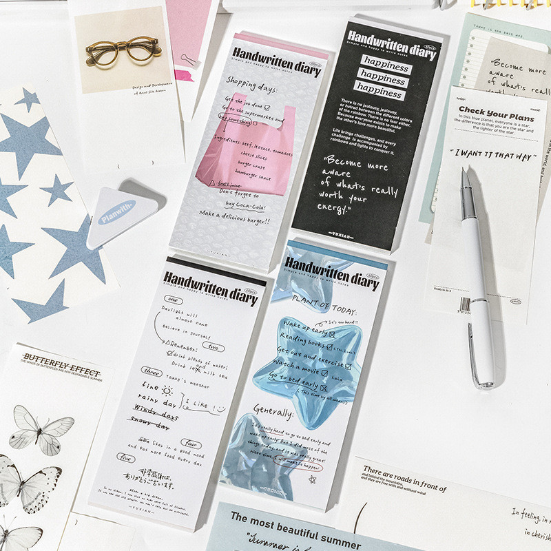 ENWEI 60 Pcs [Light Shadow Flow Series] Vintage Journal Sticky Notes Writable Memo Pad Note Paper Scrapbooking Material School Office Stationery