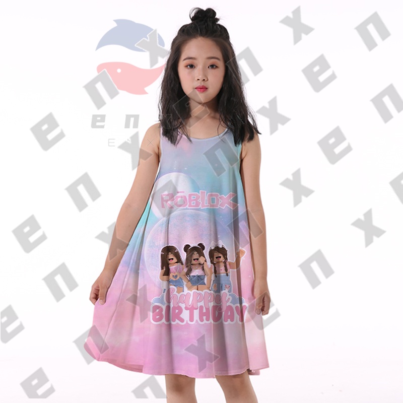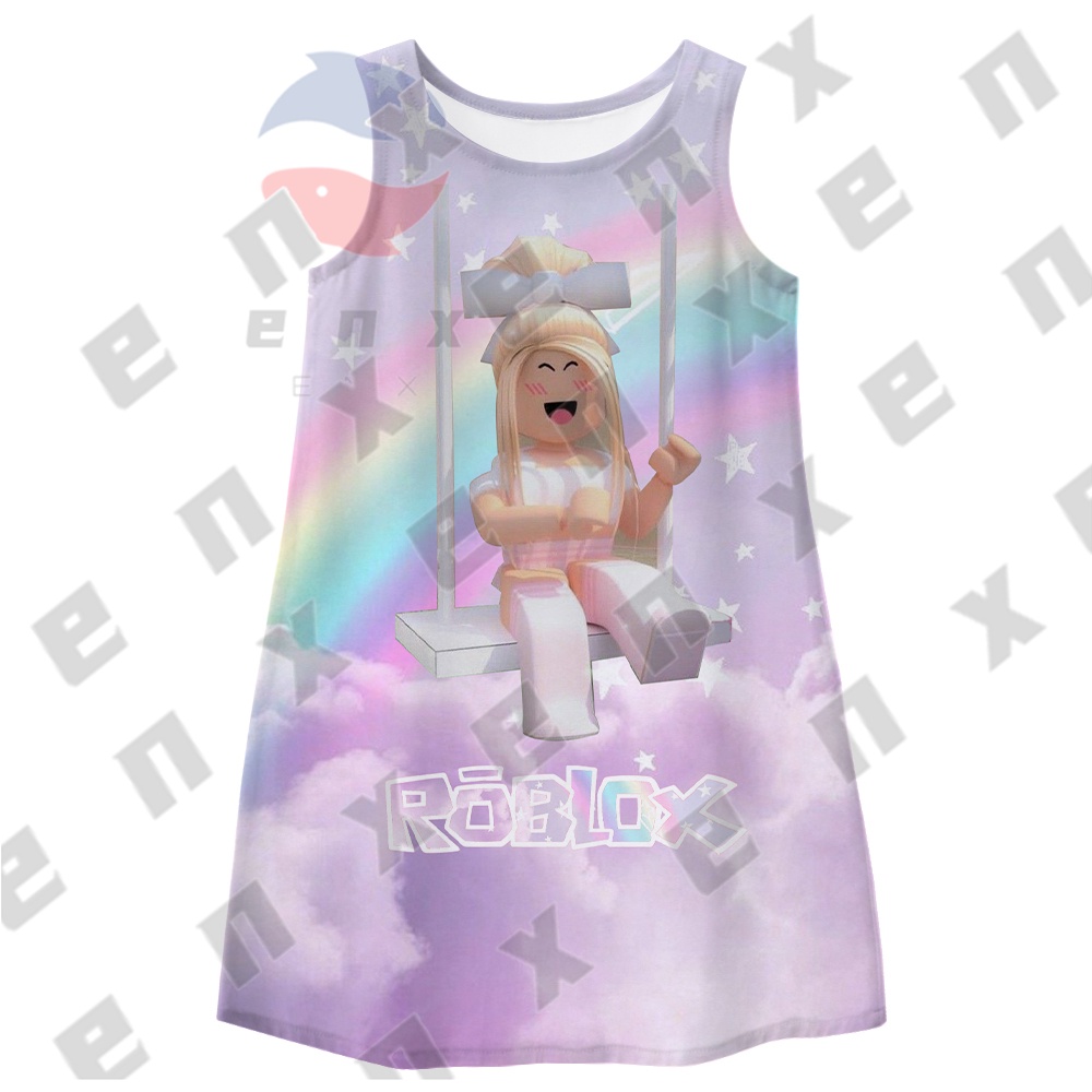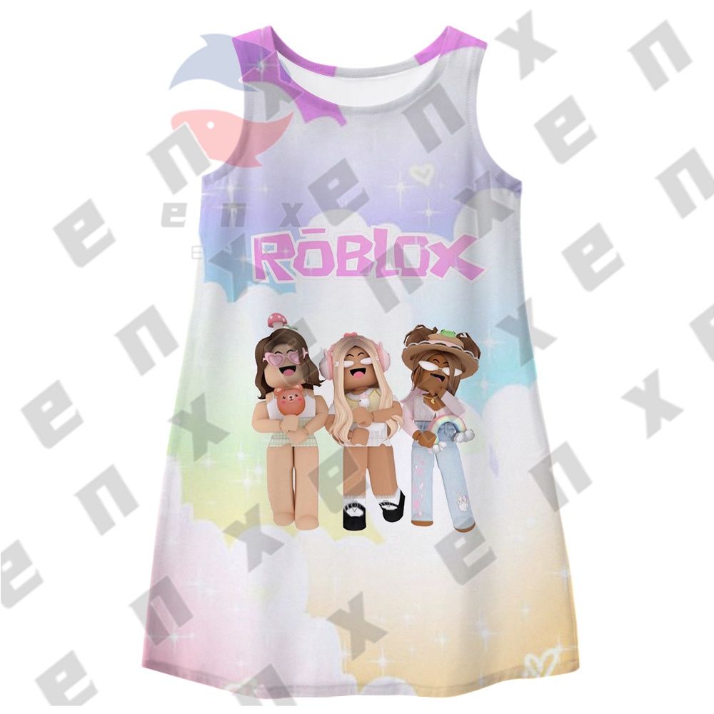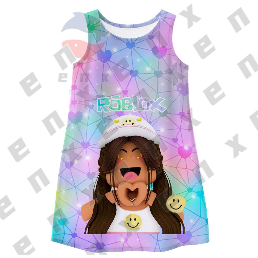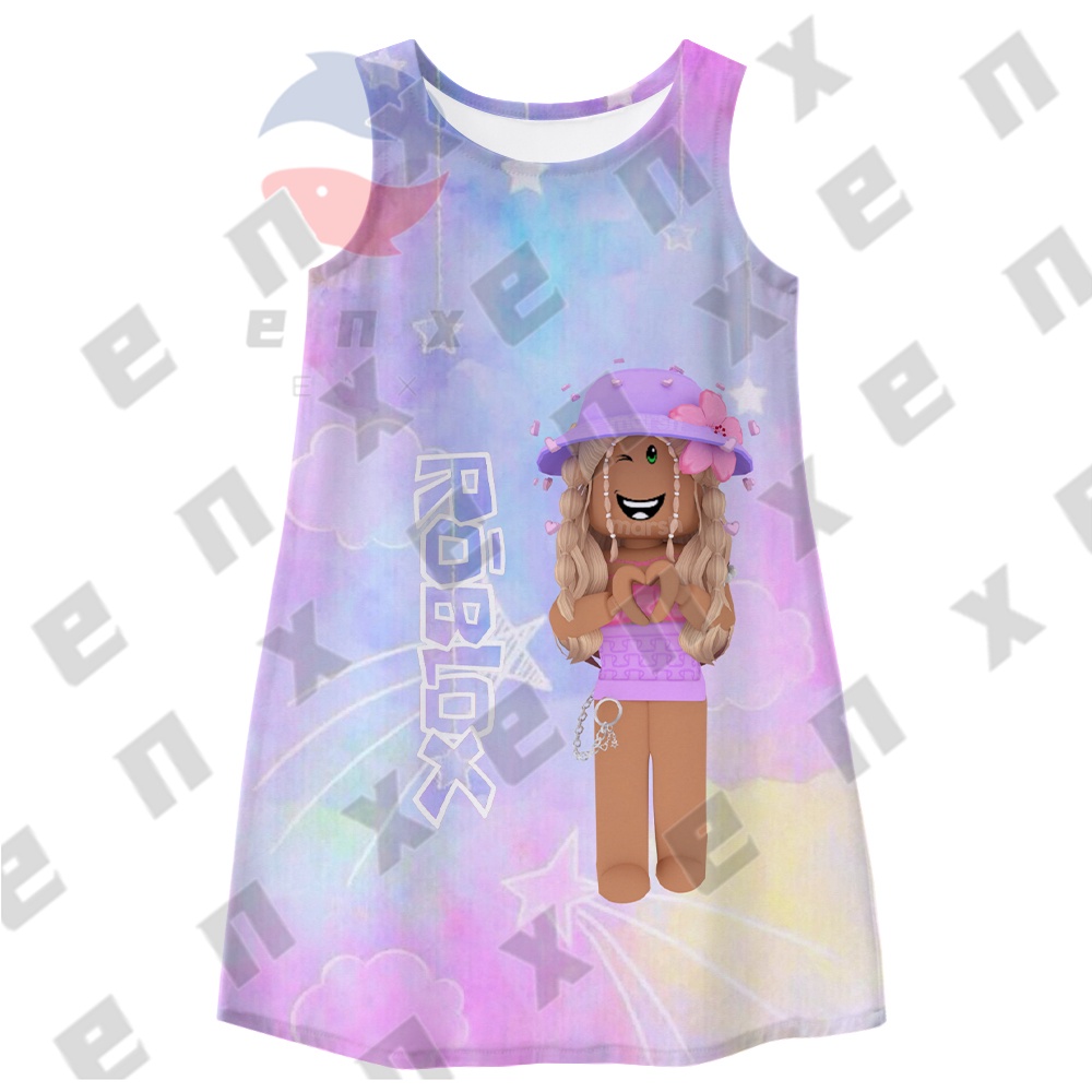 ENX ROBLOX Dress for Kids Girl Costume Baby T Shirt for Children Blouse Summer Sleeveless Printed Skirt