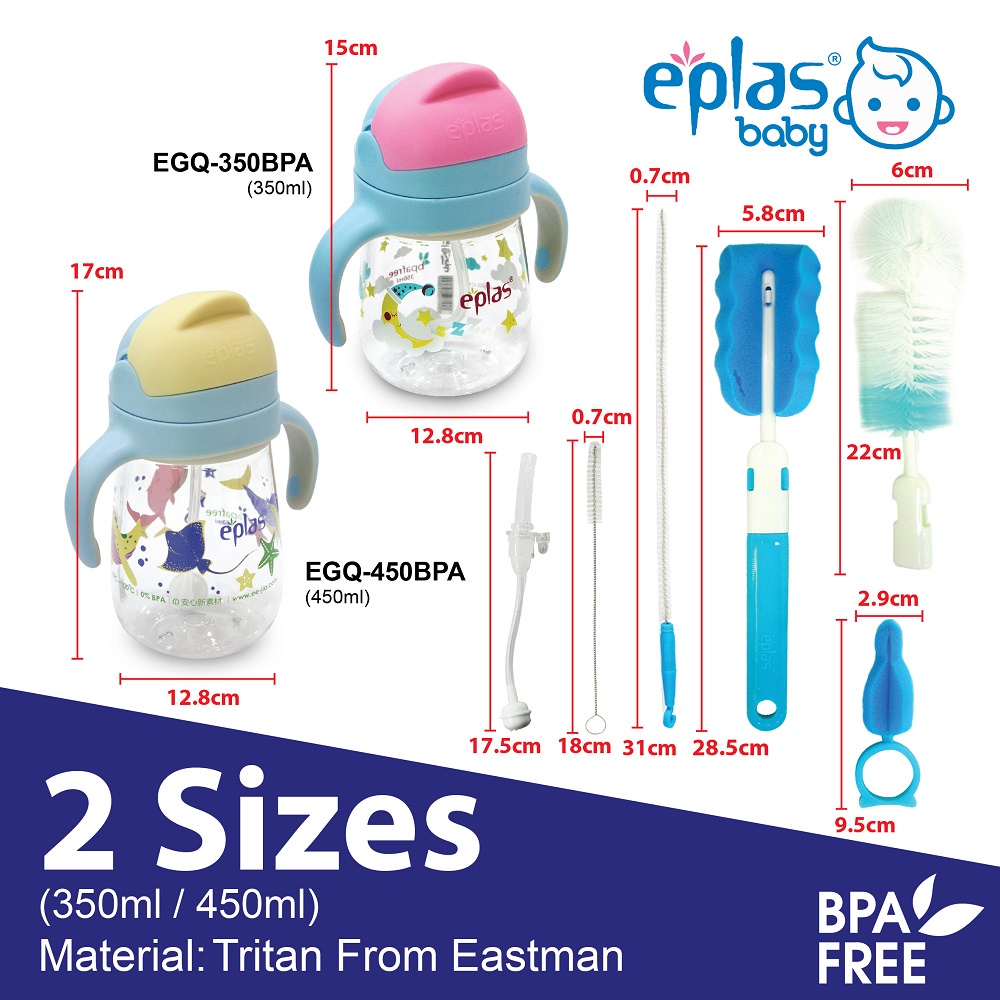 EPLAS BABY 350/450ml Anti-Choke Sippy Cup W/Straw & Handle,Baby Feeding Bottle,Cawan Latihan Bayi,EGQ-350BPA,EGQ-450BPA