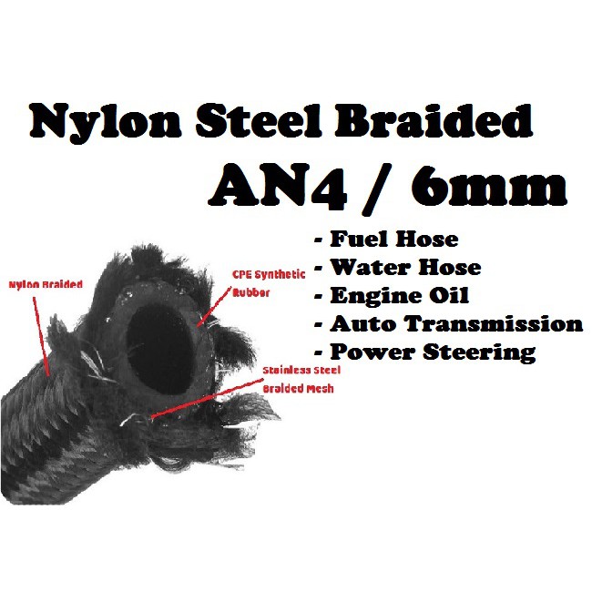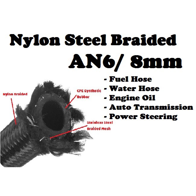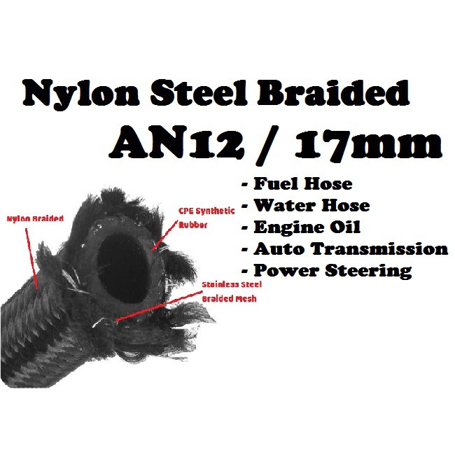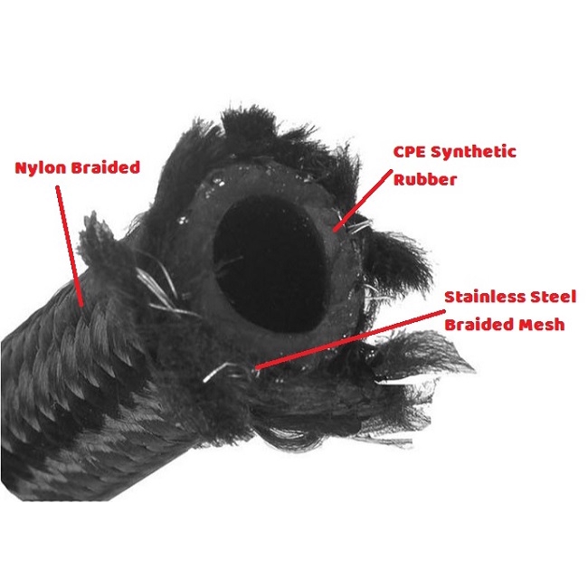 EPMAN Nylon Steel Braided Hose - AN4 AN6 AN8 AN10 AN12 Black Petrol Fuel ATF Engine Oil Coolant Radiator Vacuum