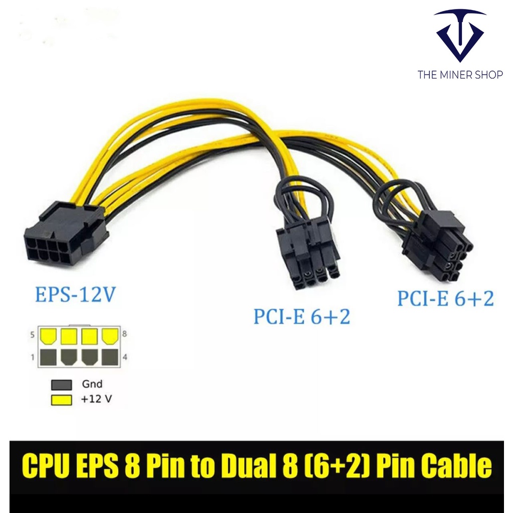 EPS CPU 12V 8 Pin to Dual 8 (6+2) Pin PCIE Adapter Power Supply Cable 20cm