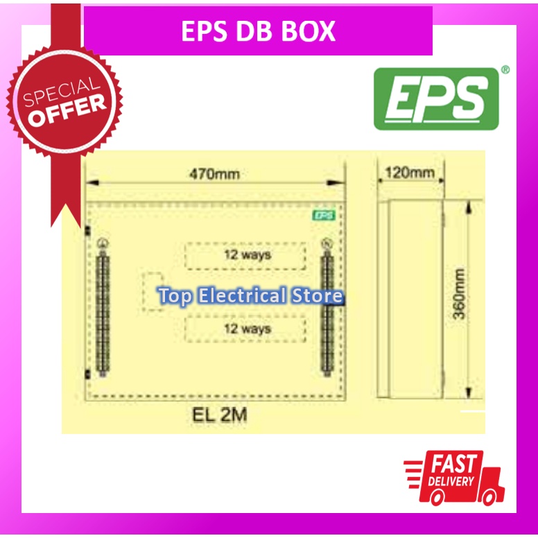 EPS EL2M EL 2M (2 ROW 24 WAYS + MCCB) METAL CLAD ENCLOSURE DB BOX MCB METAL BOX