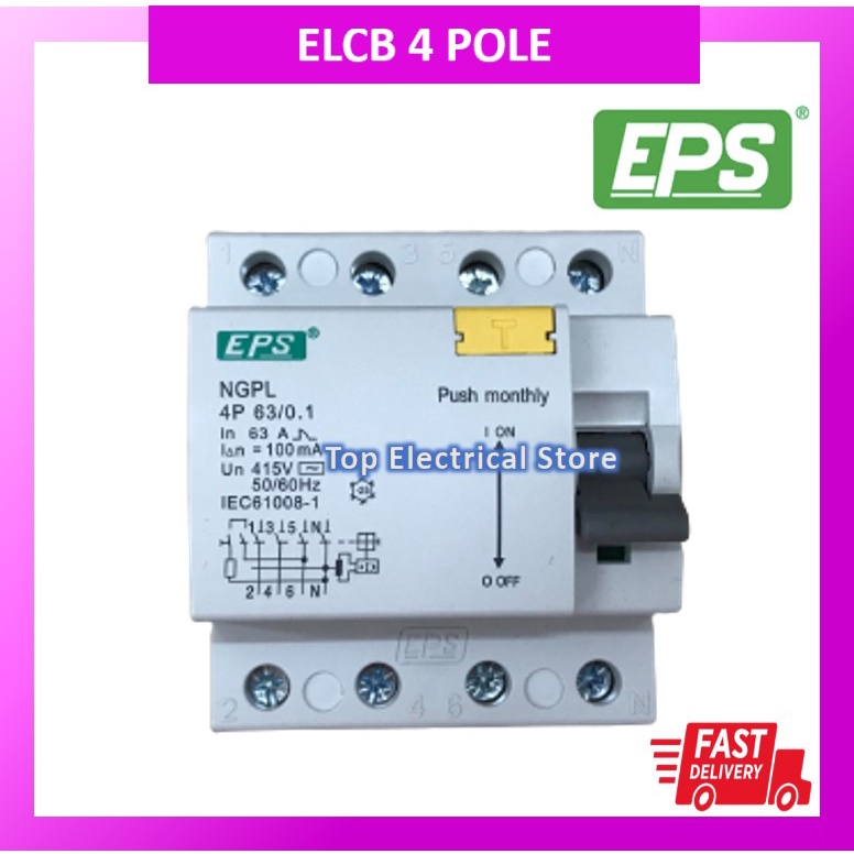 EPS ELCB RCCB 4 POLE 40A/63A/100A 30MA 100MA 300MA