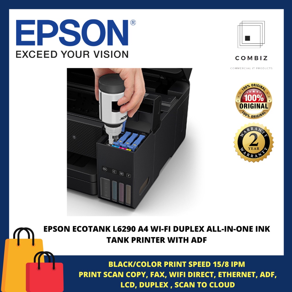 EPSON ECOTANK L6290 A4 WI-FI DUPLEX ALL-IN-ONE INK TANK PRINTER WITH ADF (STOCK PLEASE ASK SELLER)