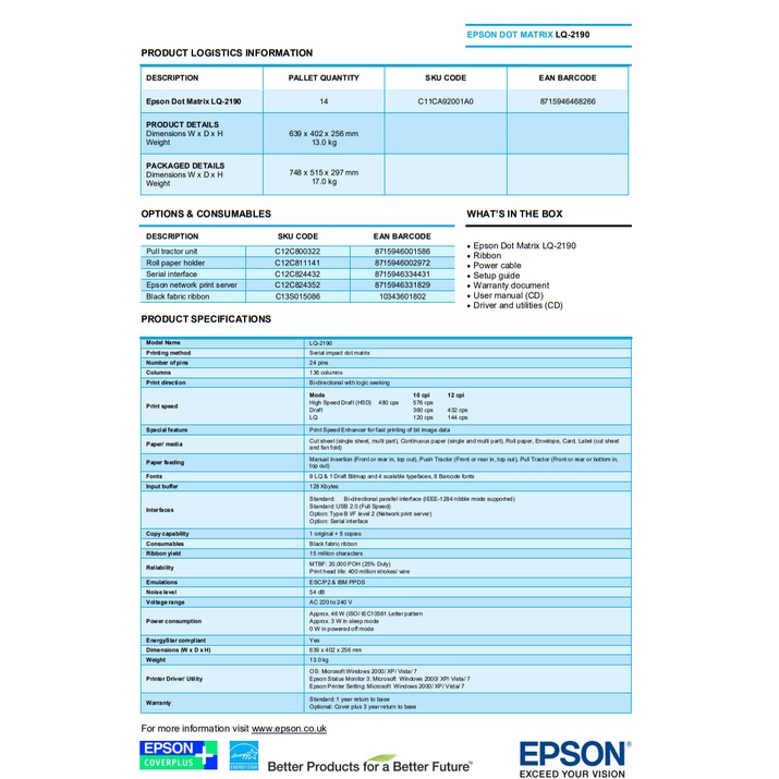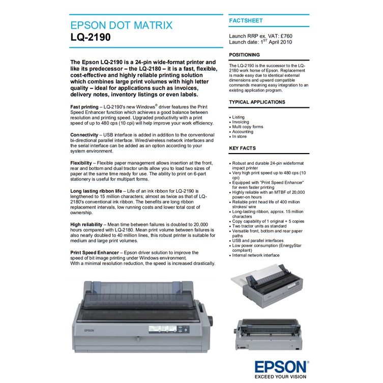 EPSON LQ-2190 DOT MATRIX PRINTER