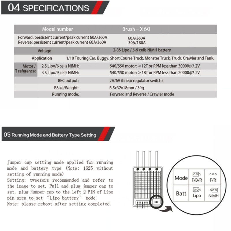 ESC Brushed 1060 60A KYRC Brushed ESC 6V/2A BEC for All 1/10 1/12 1/16 1/18 RC Car Mn MJX SCY WPL Wltoys