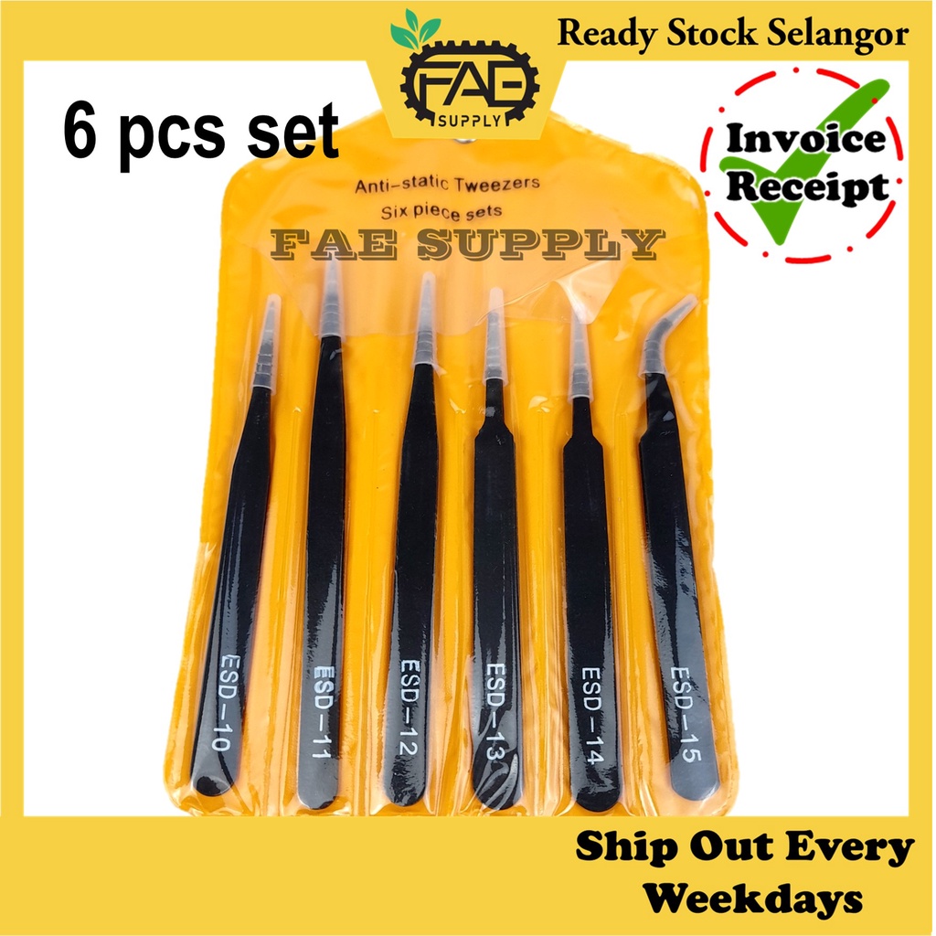 ESD Tweezer Set Stainless Steel Anti Static Precision Curved Straight ESD10/11/12/13/14/15Keluli Tahan Karat Anti Statik