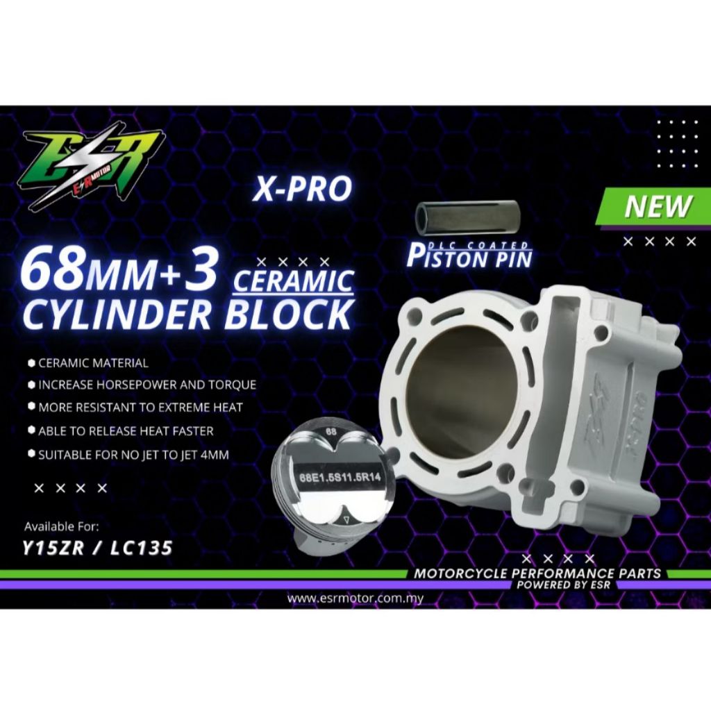 ESR CYLINDER CERAMIC BLOCK KIT X-PRO 57MM+2MM DLC PIN 60+2MM DLC PIN 63MM+3MM DLC PIN 65MM+3MM DLC PINY15ZR/LC135