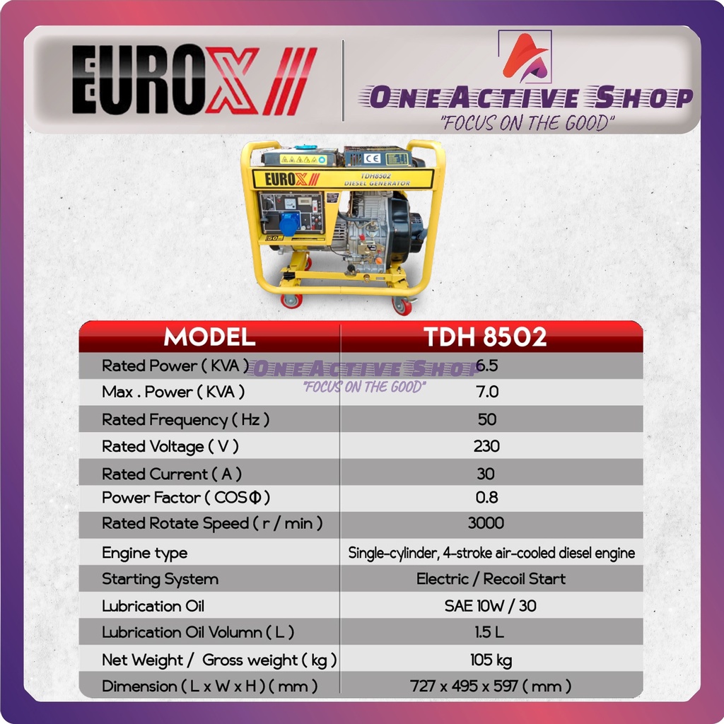 EUROX Diesel Generator 7000W 4-Stroke (Recoil & Battery Starter) TDH8502 - 6 Month Warranty ( WELDING GENERATOR )