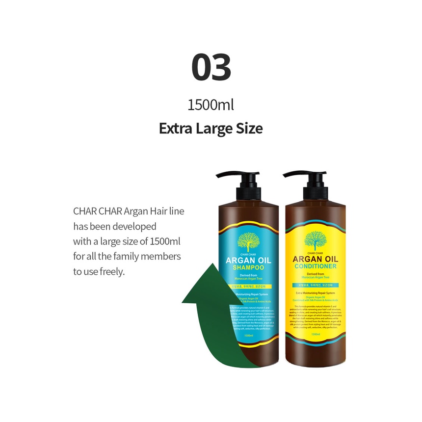 EVAS Char Char Argan Oil Conditioner 1500ml | Korea Soft Silky Repair for Dry Frizzy Damaged Hair
