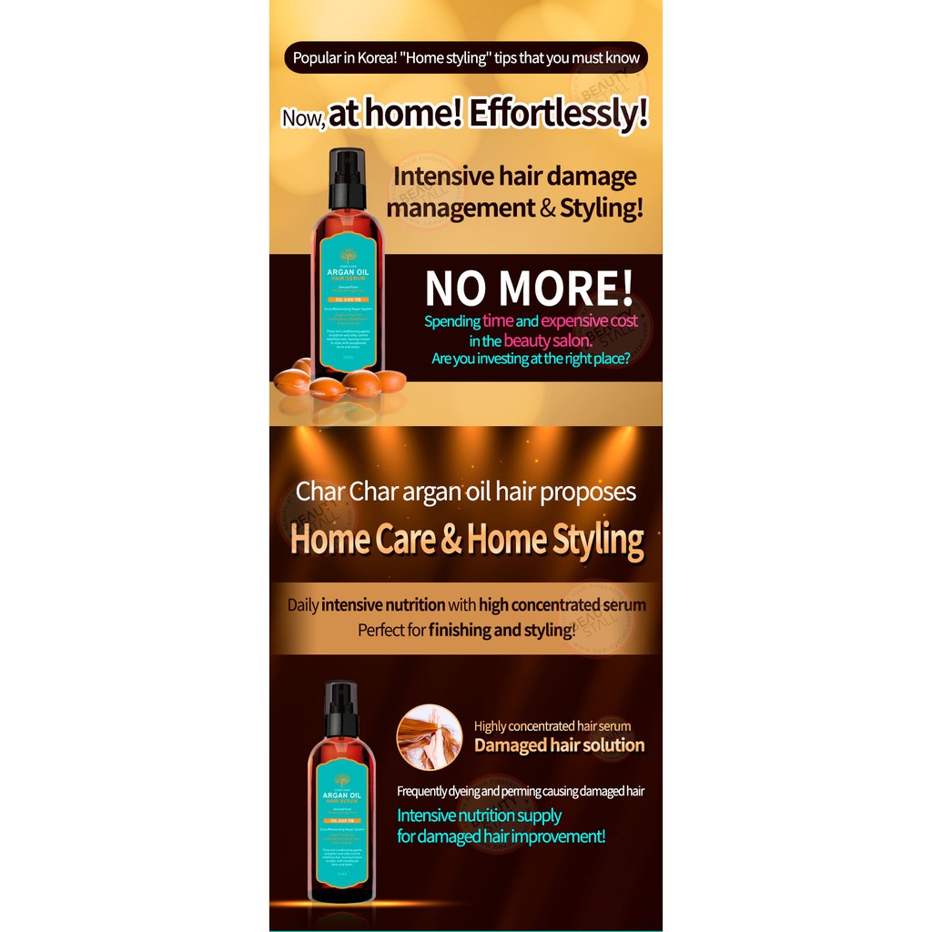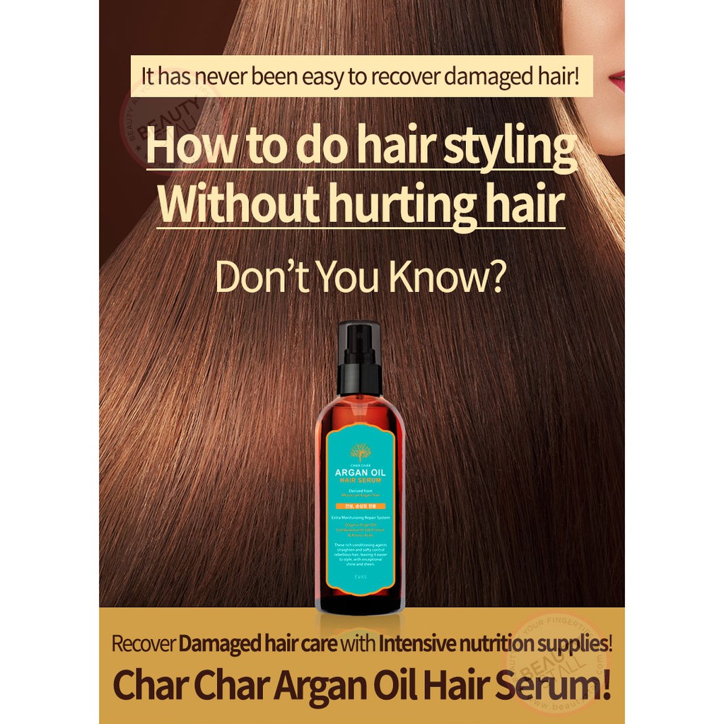 EVAS Char Char Argan Oil Hair Serum 200ml | Intensive Repair & Shine Anti-Frizz for Dry Damaged Hair