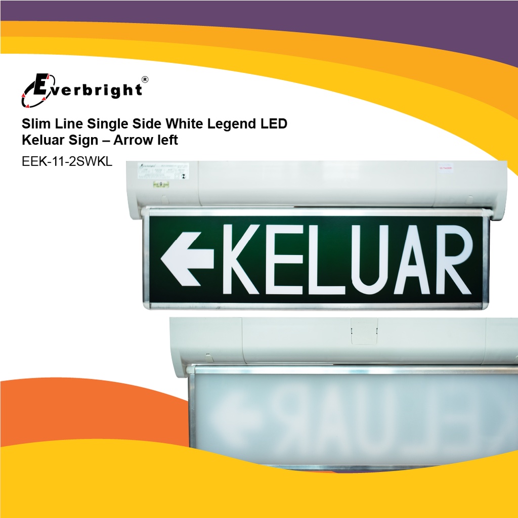 EVERBRIGT Slim Line Single Side White Legend LED Keluar Sign