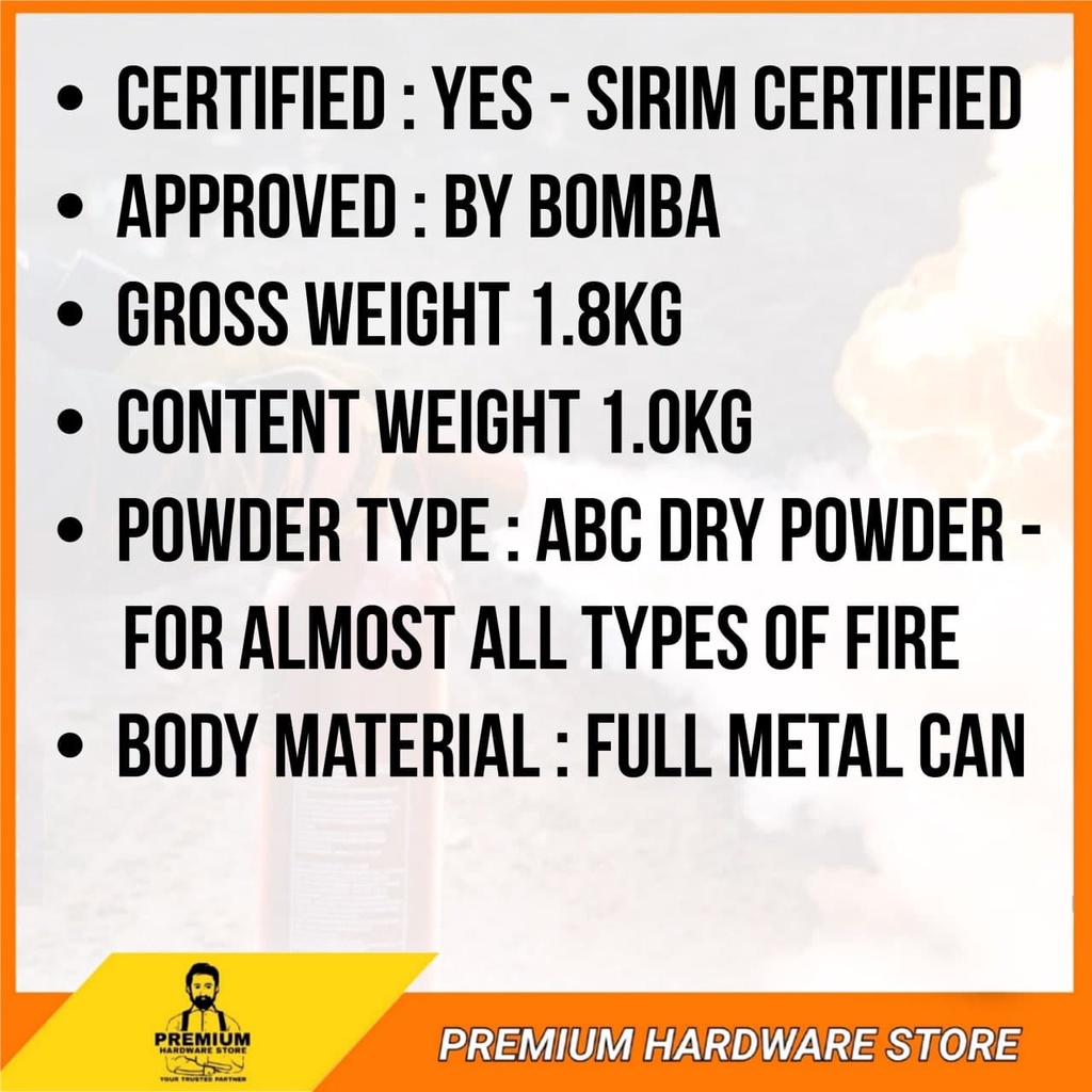 EVERSAFE 1kg ABC Powder Fire Extinguisher Multipurpose for Car Home Mini Small Dry Powder Pemadam Api Kereta Rumah