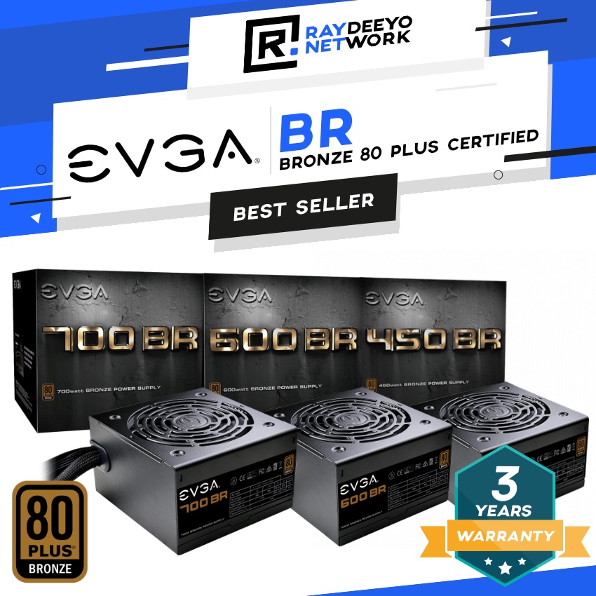 EVGA 450 BR / 600 BR / 700 BR 80+ Bronze 450W/600W/700W Power Supply Unit PSU [80 Plus Bronze Certified]
